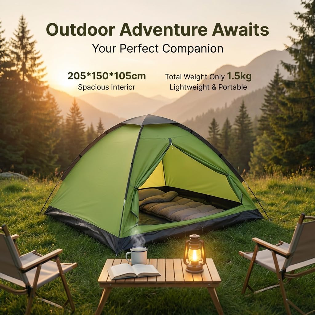 Spacious, lightweight and easy to carry Size: 205*150*105cm/80.7*59*41.3inch, the spacious interior can easily accommodate two campers and all their gear. Weight: Total weight is only 1.5kg (about 3.3lbs), lightweight to the extreme, suitable for backpacking hiking and self-driving trips without adding extra burden.