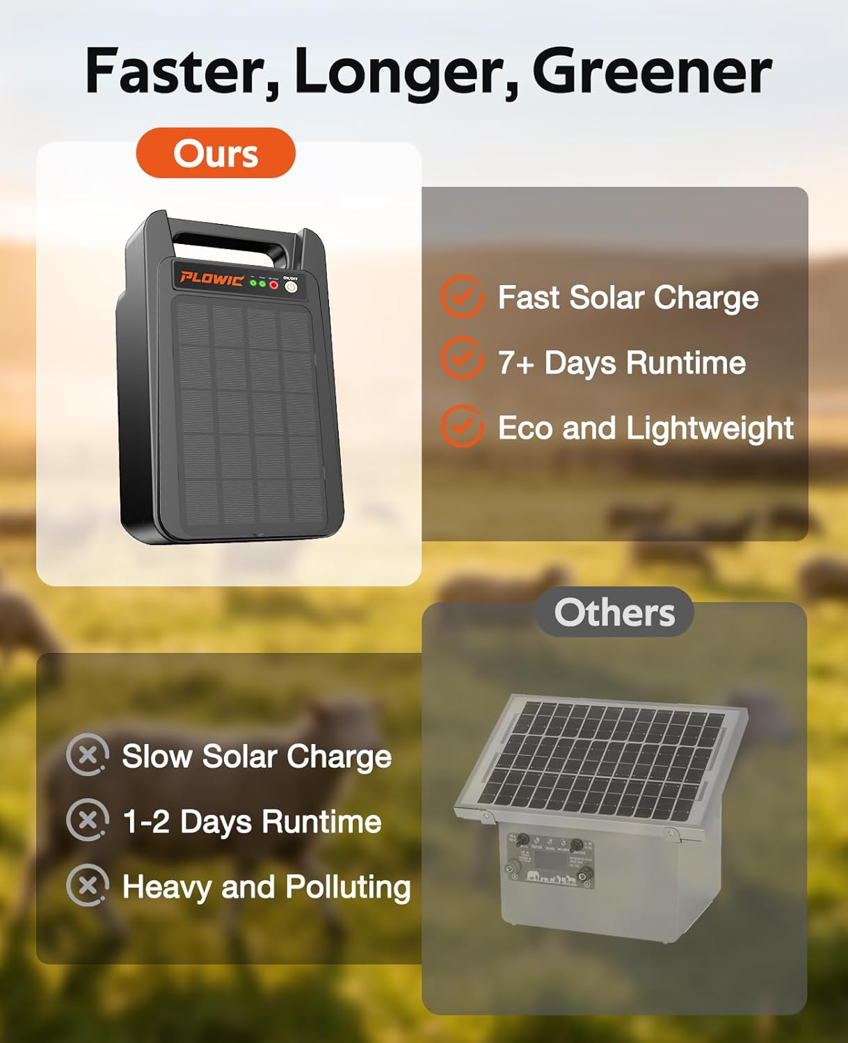 Ultra-Portable for Every Fencing Need: Our solar electric fence charger is lightweight—grab this solar-powered tool to move anywhere. It works for home electric fence, livestock pastures and pet enclosures, and it’ s great for protecting dogs too. No bulk, just simple electric fence protection that follows your needs