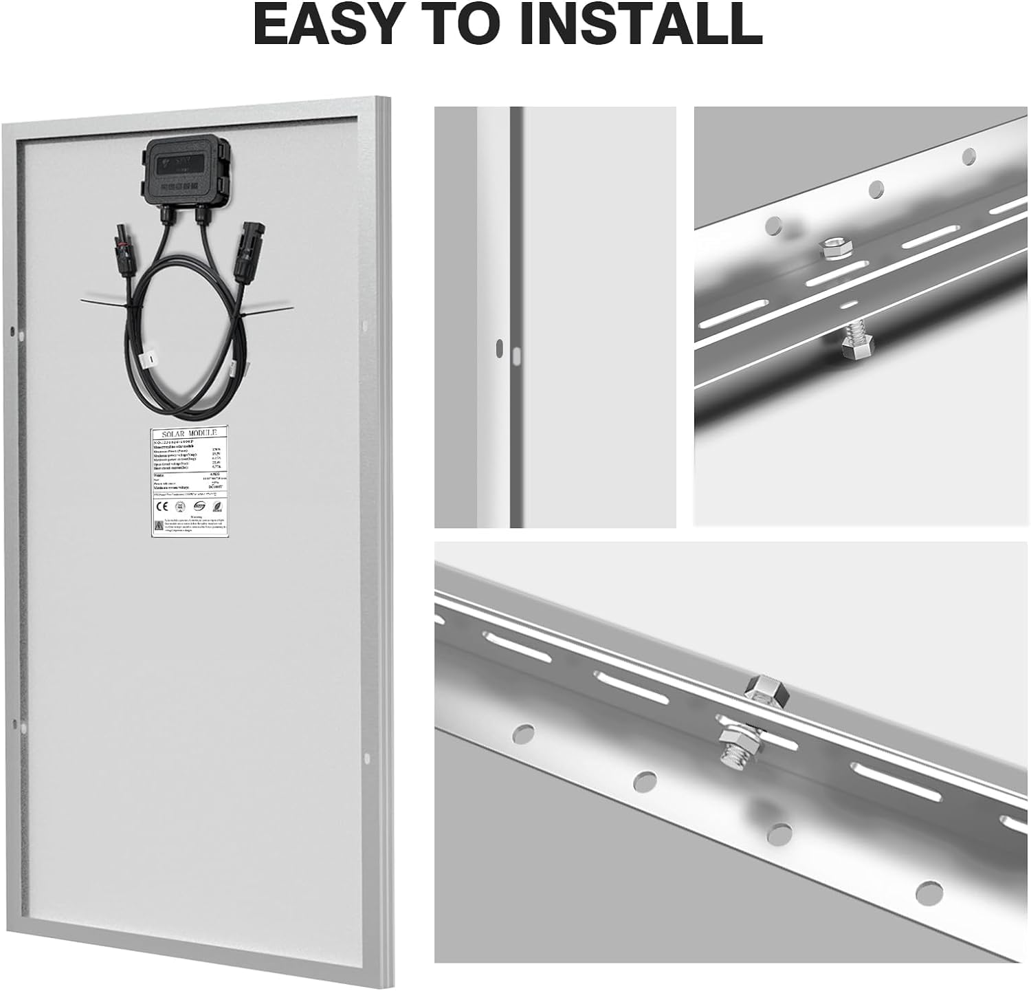EASY to INSTALL: The solar panels 100 watt has a built-in MC-4 connector, which can easily insert and pull out the solar controller. The pre-drilled hole on the back of the panel helps install it in your vehicle, RV or other place you need it. Each of our solar panels is tested and inspected before leaving the factory to ensure flawlessness. If you have any questions, please feel free to contact us