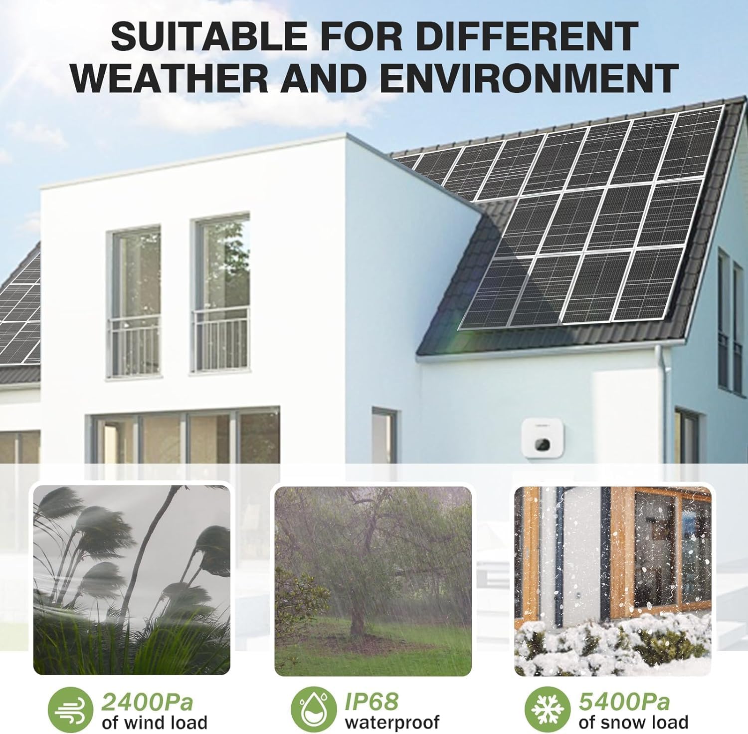 SAFETY: 12v 24v monocrystalline solar panel can withstand high winds (2400pa) and snow loads (5400pa). The outdoor solar panel is certified ROHS, CE. It can help your device receive the most effective sunlight safely