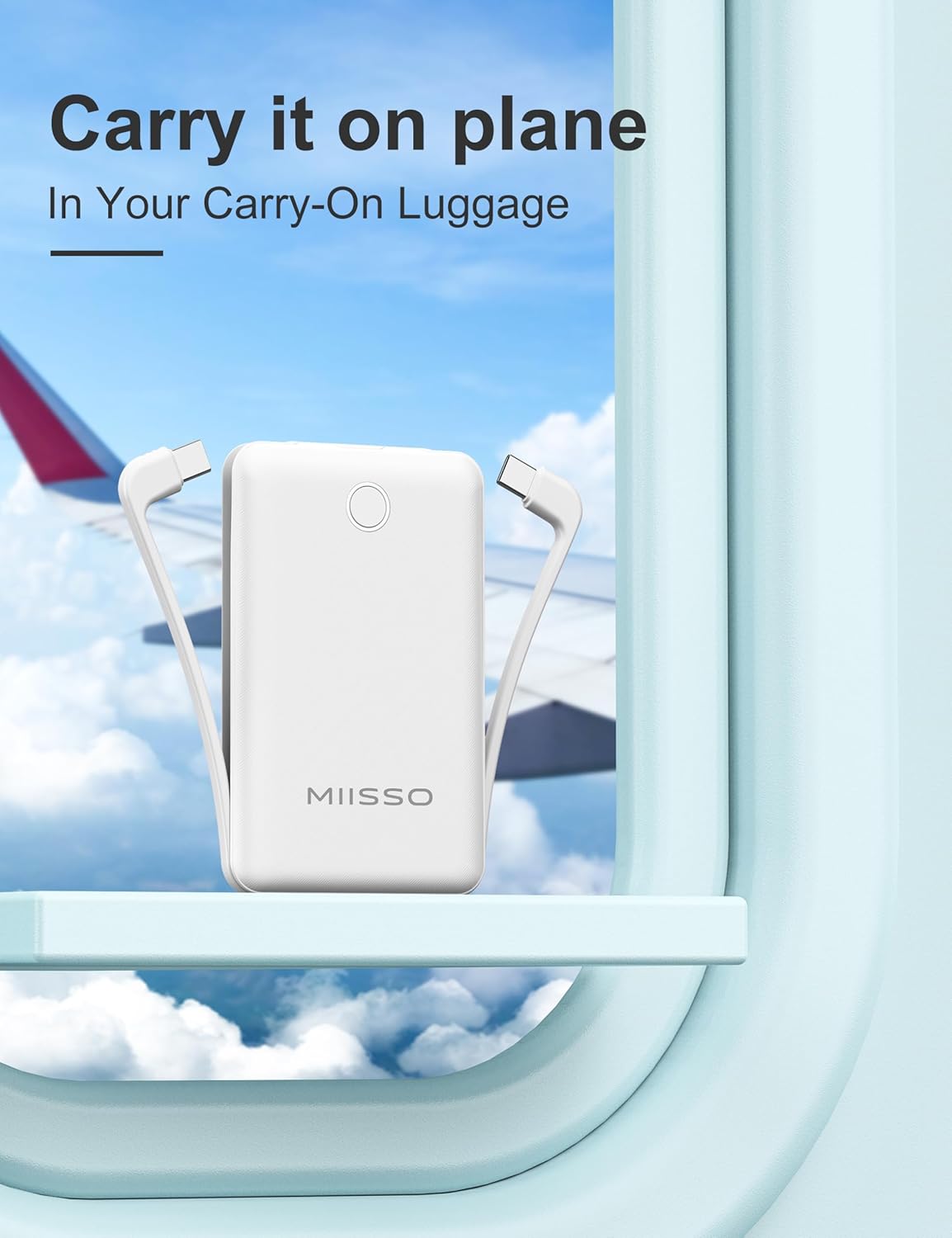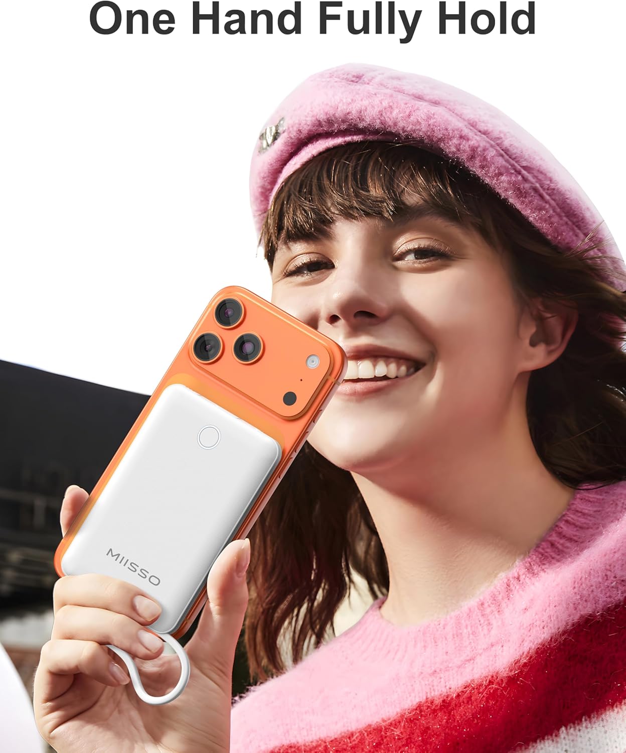 Pocket Size: It is the Smallest miisso 10000mah Power Bank, 2025 upgraded version. Its body is slim, 4.25*2.74*0.67inch, really pocket size. You can carry it in your handbag or pocket. It will be your most important partner daily. And when you are traveling or on a business trip that will be helpful