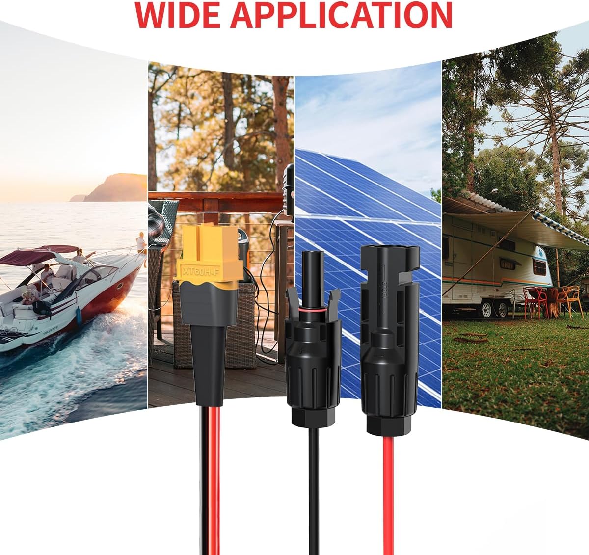 [Easy to Use] XT60 and solar connectors fit most solar panels and battery packs,solar panels and power stations can be easily connected.Rated Voltage 300V. Cable Length: 25FT