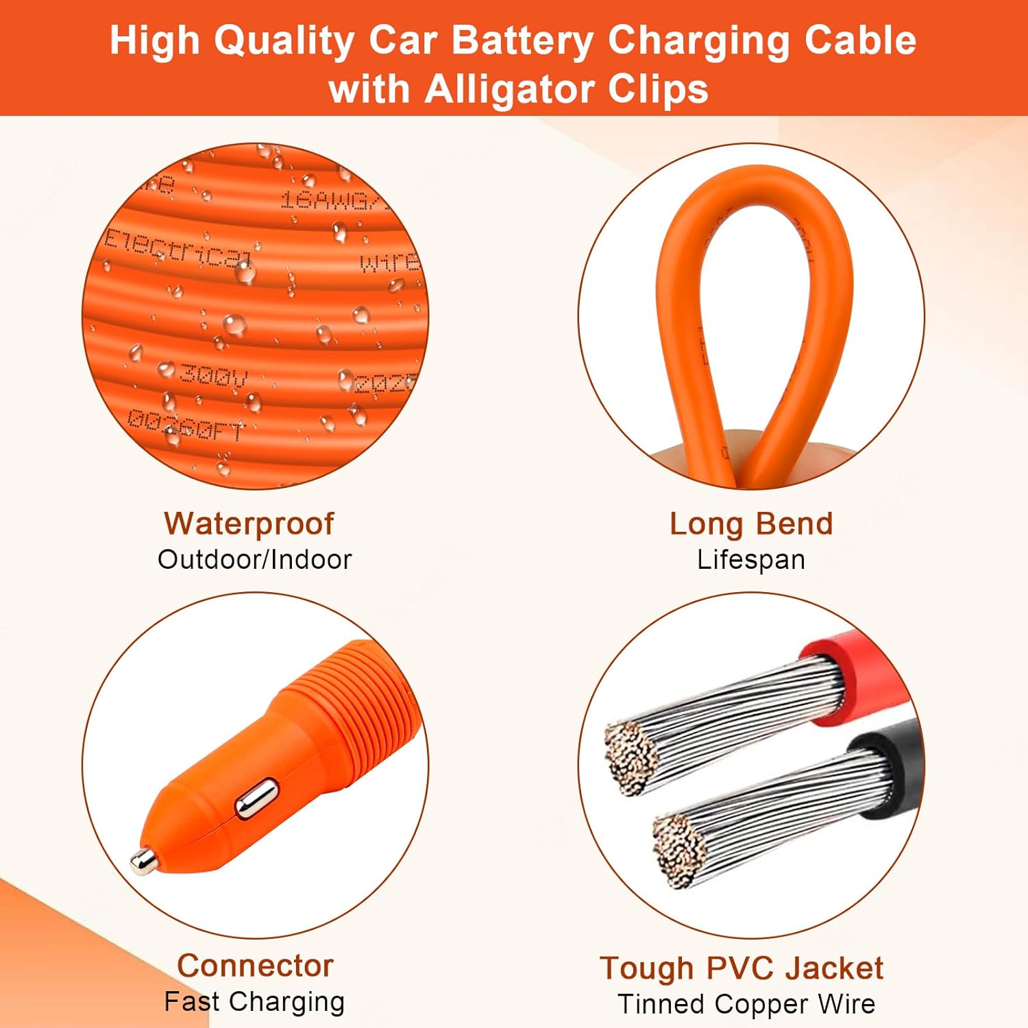 DURABLE ALLIGATOR CLIPS — The robust, heat-resistant handles of the alligator clips offer excellent insulation and a secure grip without loosening. Featuring large clips for a strong attachment, double welding, and screw mechanical fixation, this cable ensures optimal conductivity and safe usage with no exposed metal.