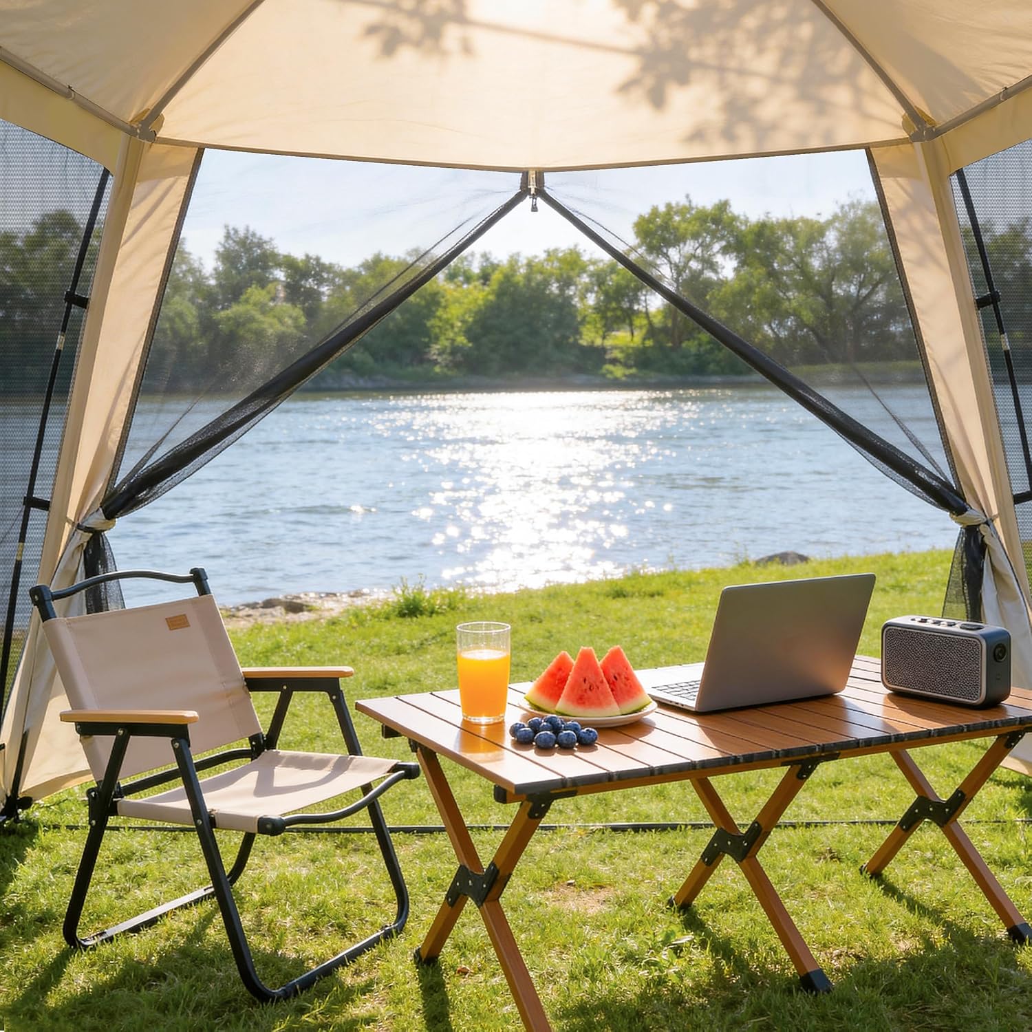 【Spacious interior space camping canopy】The screen tent size 125.98*125.98*82.67in, large enough space for 8-10 adults, and a huge interior space for camping equipment, you don’t need to worry about bending down inside the tent, ideal for camping in the wild with family and friends