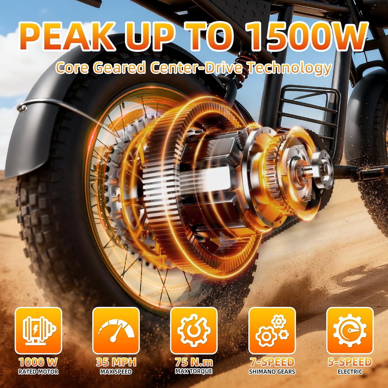 20″ Electric Bike for Adults with 1000W/1600W/3000W Peak Dual Motor,Max Speed 33-37MPH,Up to 60Miles,Moped ebikes with 20/35Ah Battery,Shipped from USA Warehouse