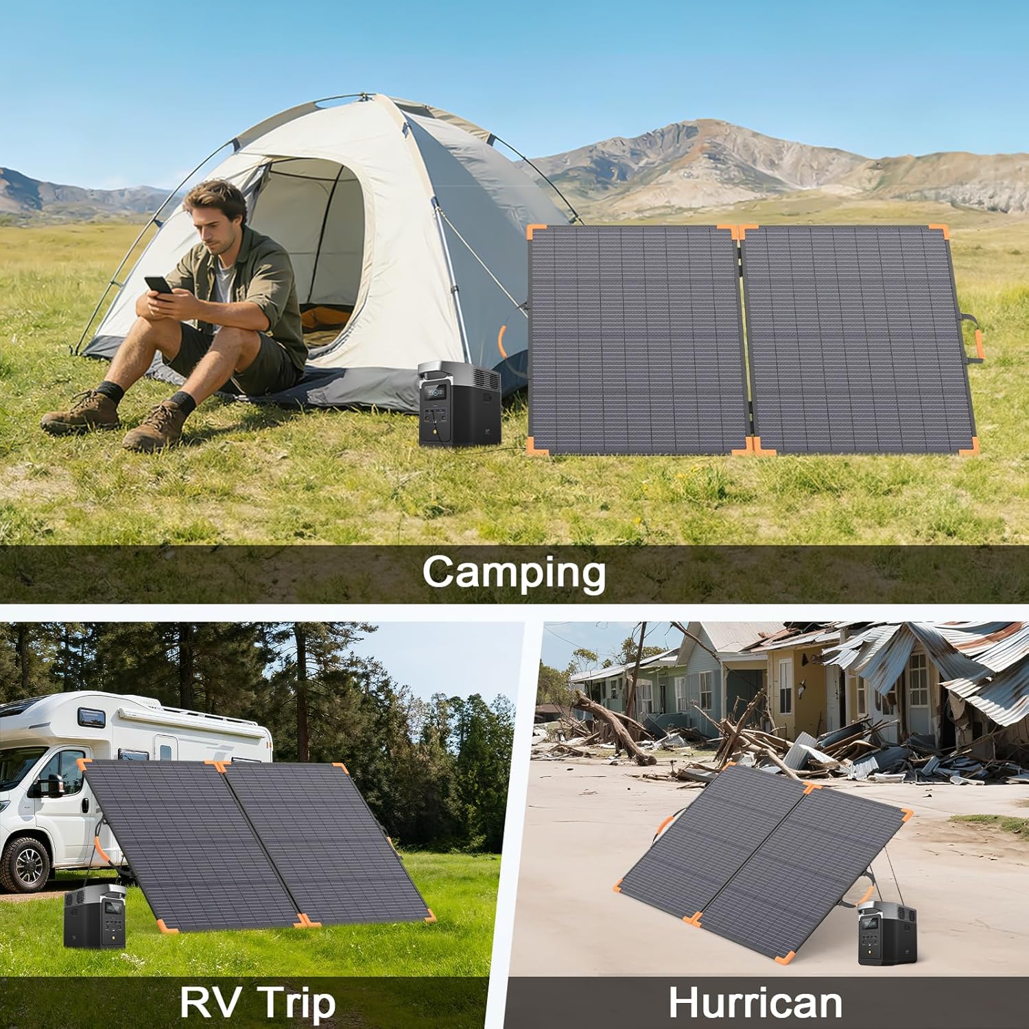 【Camping Essentials You Must Have】With a folded size of 26.7 x 34.6 x 1.3 inches and a lightweight design of 11Lb(5 kg), this 200 watt camping solar panel is an essential power companion for camping, fishing, van life and emergency use. A must-have camping gear for explorers seeking easy-to-carry power