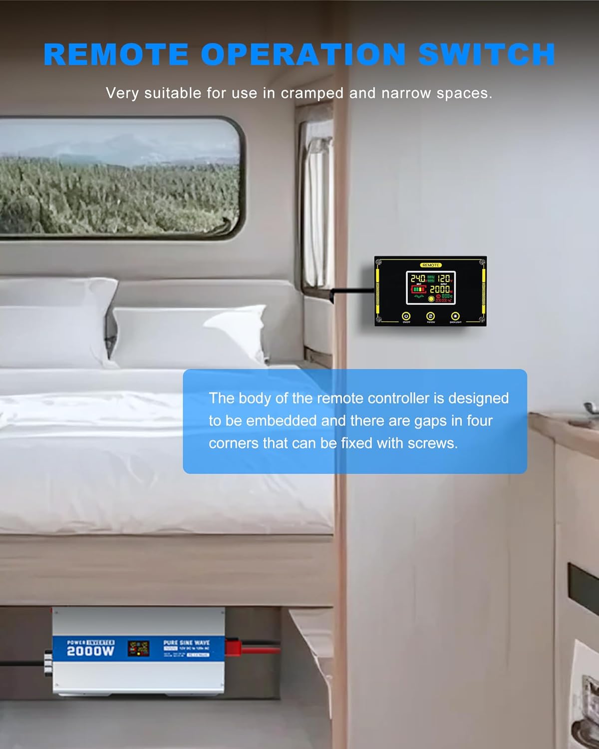 【LED & REMOTE CONTROLLER】The remote controller with a 16.4ft cable makes it more convenient to operate in different situations. LED screen has accurate responses in normal and abnormal working conditions. The rich accessory package allows you to use it freely, the inverter includes 2 120V AC output ports, 1 USB port 5V 2.4A, and 1 AC terminal board. Box includes 2 2.62ft 5AWG positive and negative battery cables, a 1.64ft ground wire, and 5 40A 32V fuses.