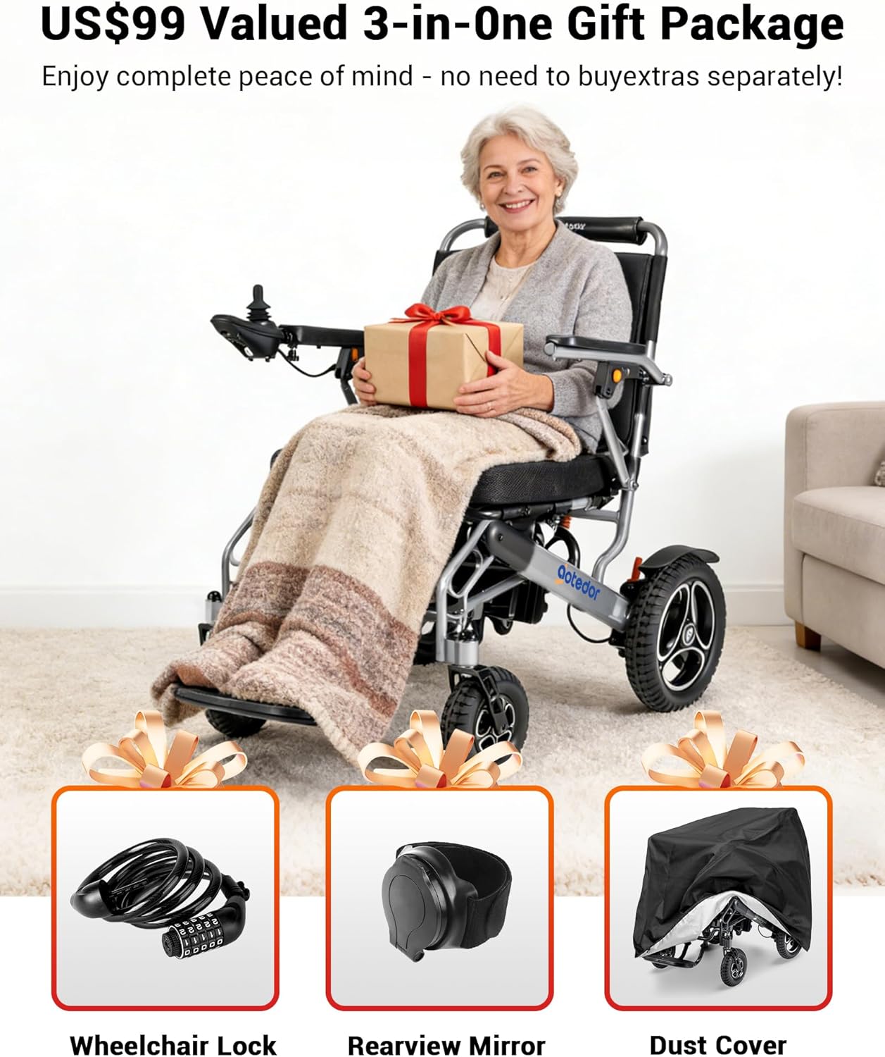 2026 Upgraded Aotedor Electric Wheelchairs for Adults, 35 Mi Long Range with Two Batteries and Dual Brushless Motors, Foldable Power Wheelchair, 330 lbs Capacity Motorized Wheelchair Airline Approved