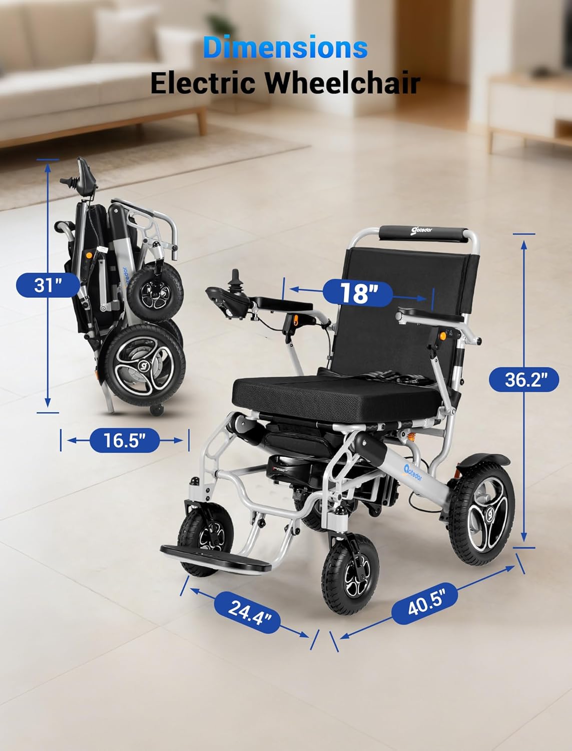 【Dual Battery System for Versatile Use】This electric wheelchairs for seniors features two lithium batteries: a 24V/20AH battery for extended daily use (up to 35 miles per charge), and a 24V/10AH battery (under 300Wh) that complies with air travel standards (always check with your airline beforehand). Its innovative design supports both long-distance mobility and air travel, redefining travel freedom.