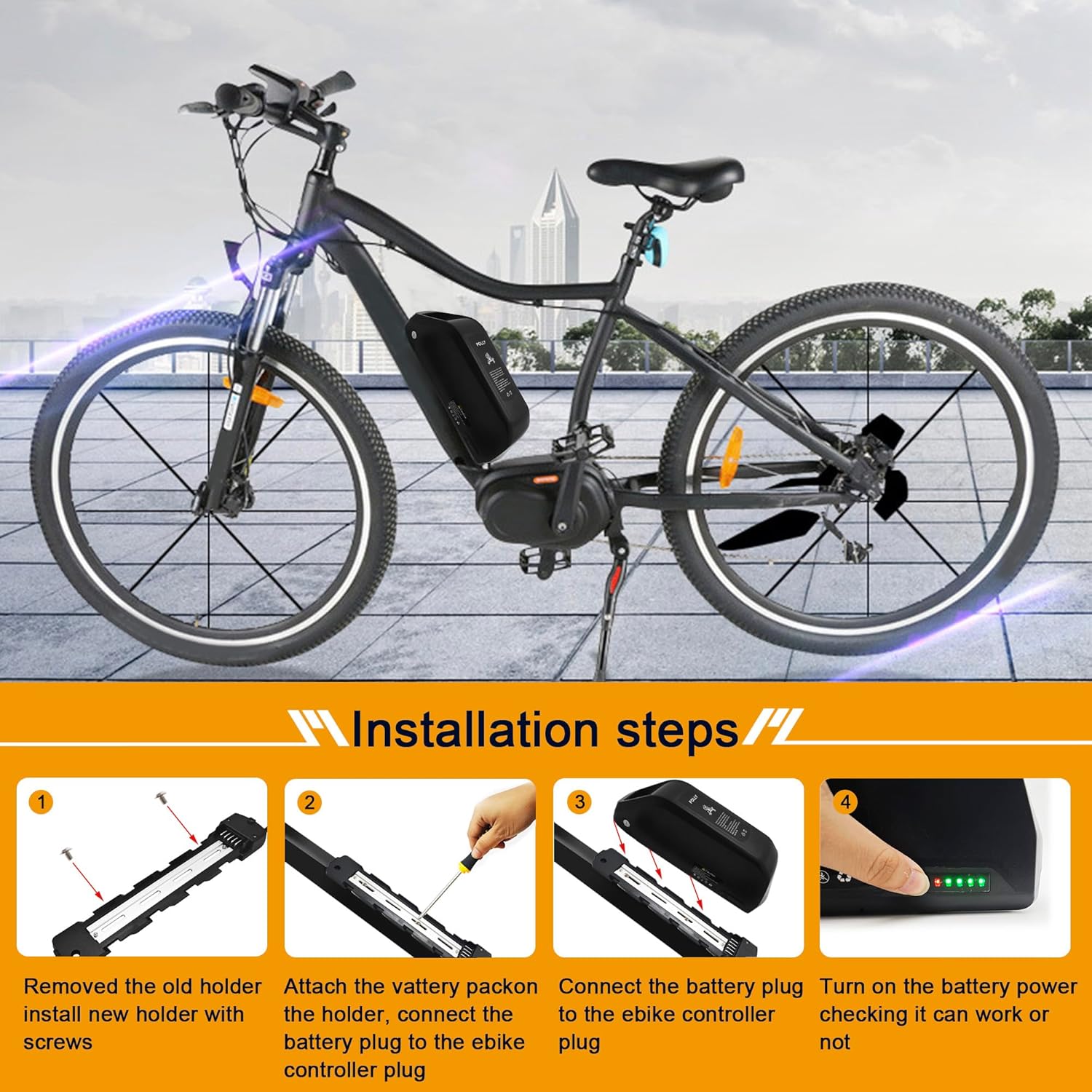 【High Quality Lithium Battery】This e-bike battery is built-in 50A bms, there is a power equalization chip to keep the voltage stable, meanwhile, we passed a series of quality inspection to ensure the reliability of the battery, it has a service life of 1500+ and can be used for 3-5 years.