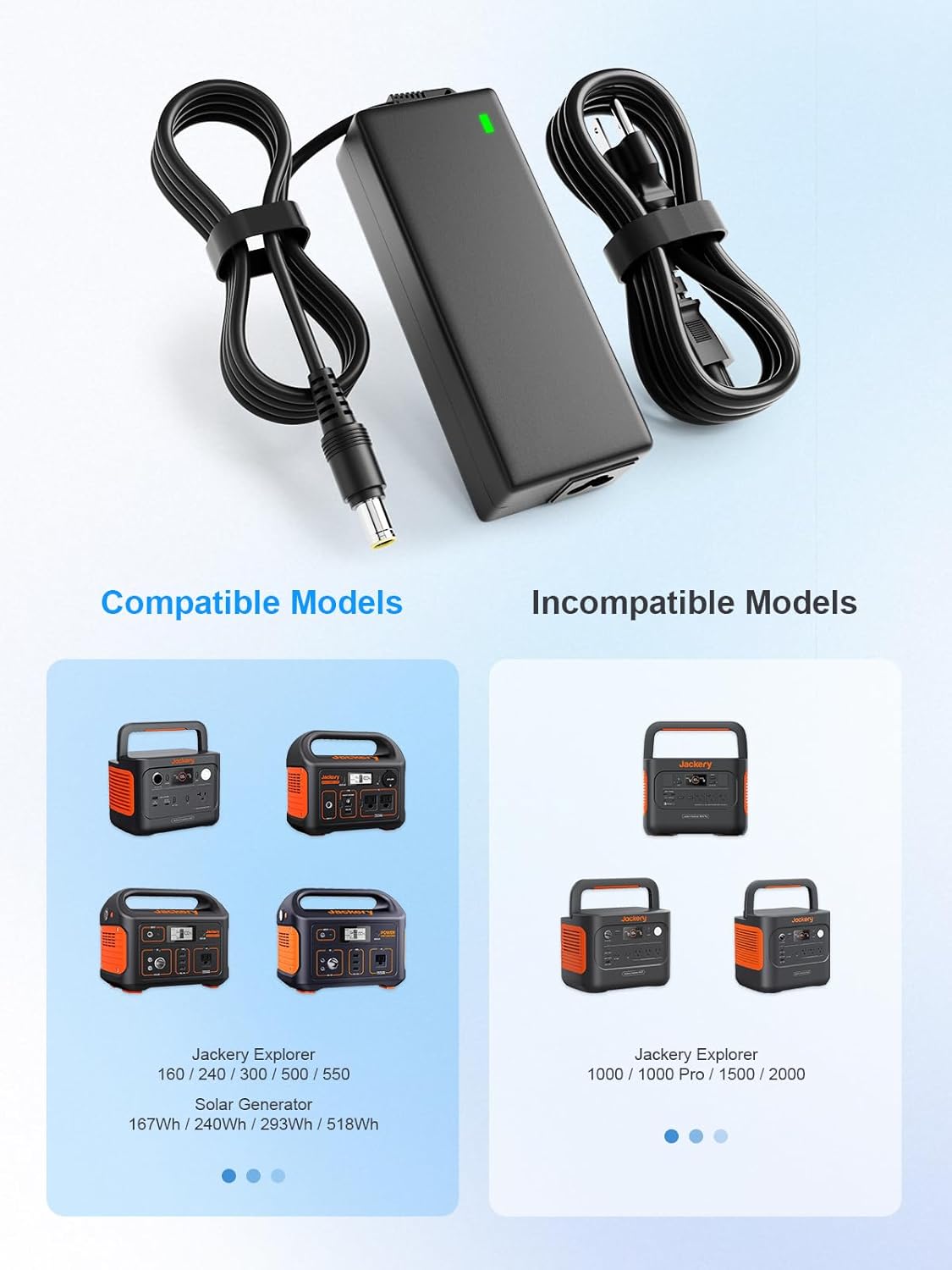 24V 90W AC Adapter Jackery Charger for Jackery Portable Power Station Explorer 160 240 300 500 550 Solar Generator 167Wh 240Wh 293Wh 518Wh Lithium Battery Charging Cord