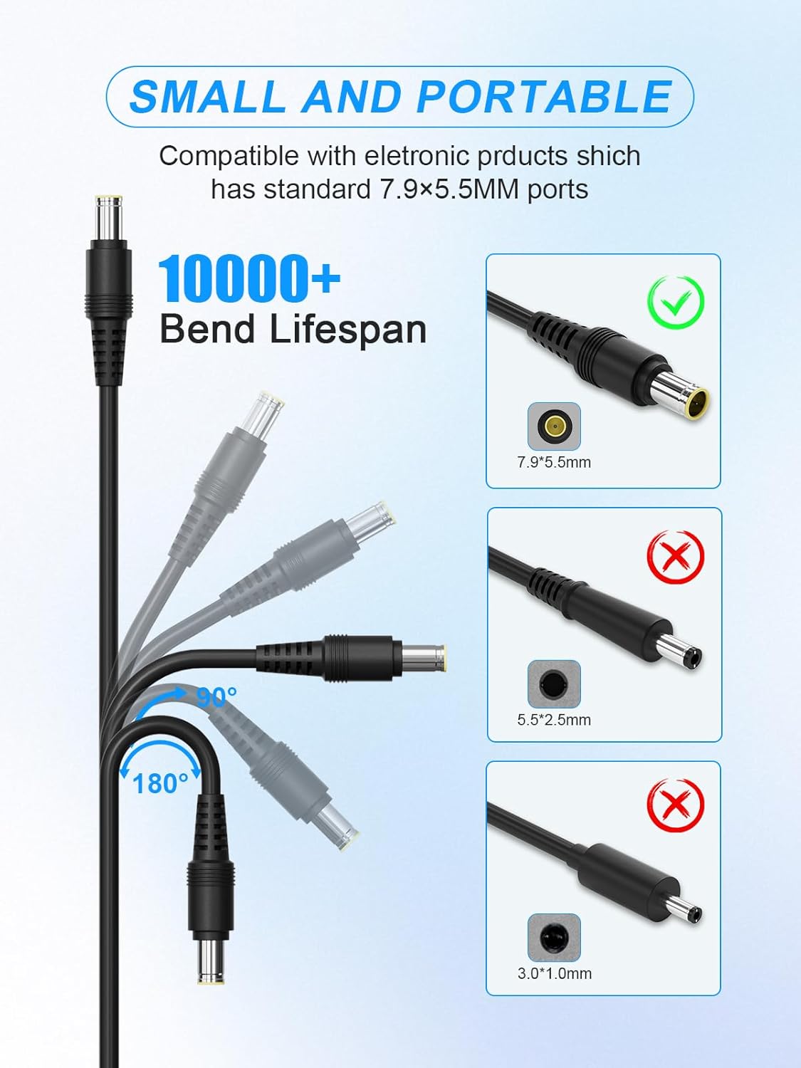 【Safety】This 90W 7.9*5.5mm Jackery charger is CE/FCC/ROHS safety certified and designed. Provides fast and efficient charging of compatible devices. Multiple protections for excellent safety, over voltage protection, over temperature protection, short circuit protection.