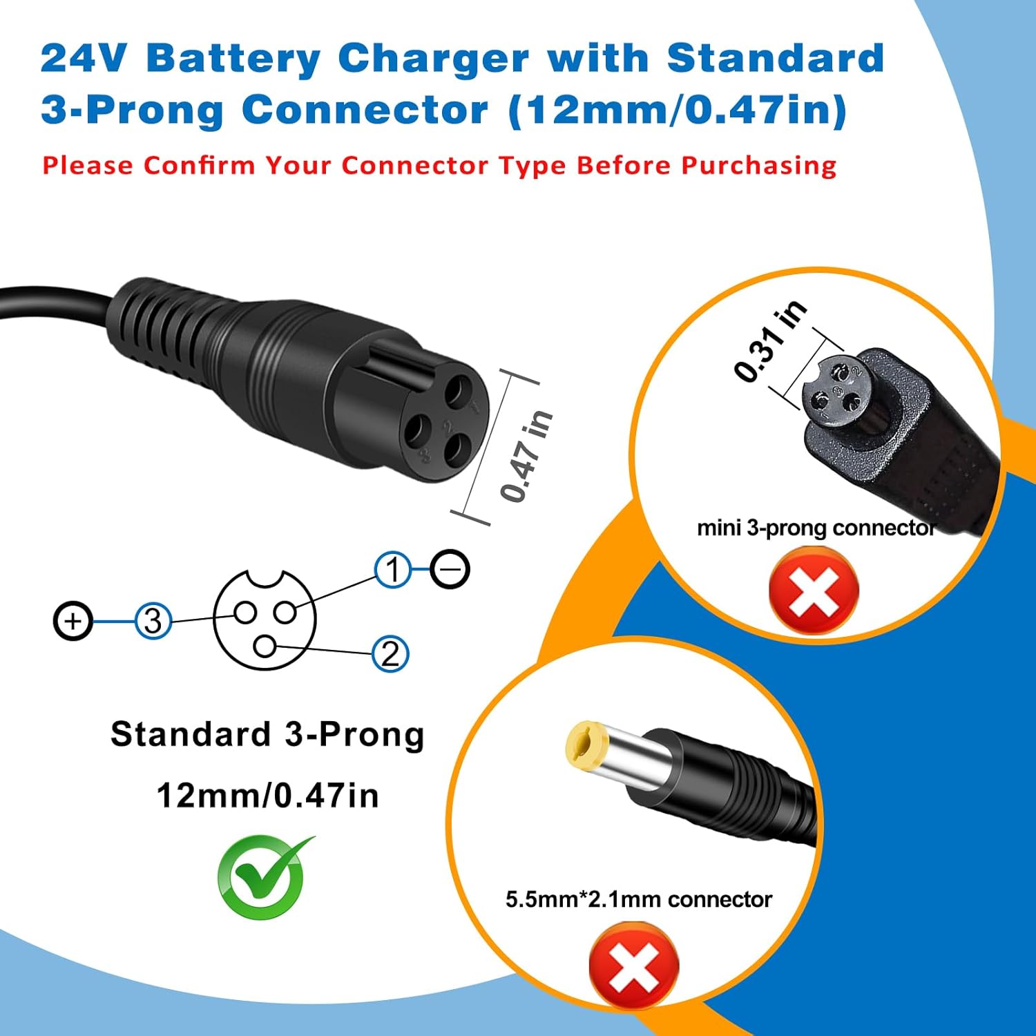 24V Charger for Electric Scooter Razor MX350 E100 E125 E150 E175 E200 E200S E300 E300S MX400 Dirt Rocket Dirt Bike Dirt Quad Motorcycle Pocket Mod Sports Mod 3-Prong Power Supply 24V Battery Charger