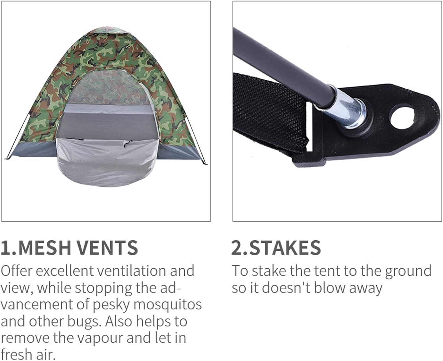 1. Material: Shell Fabric: 180T Silver Plasters, Bottom Fabric: Waterproof Oxford Cloth,Tube: 7.9mm Fibreglass