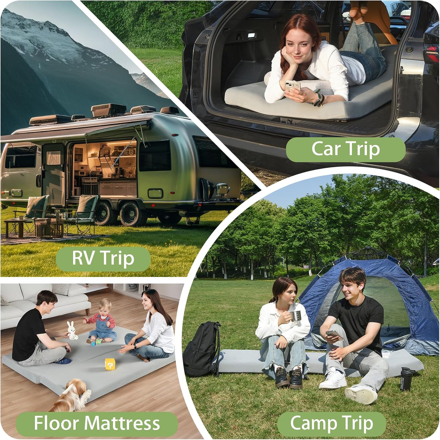[Versatile Use] This camping pad is perfect for tent camping, car camping (compatible with SUVs, RVs, vans, trucks, etc.), and can also be used as a guest sleepover bed, floor mat, or nap mattress. It offers comfort whether you’re embarking on outdoor adventures or hosting family gatherings. It provides a cozy resting experience to meet all your needs.