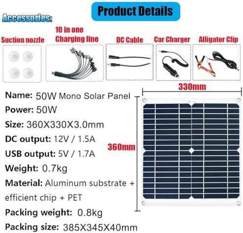 Efficient and Portable, this Solar Power Set features a 50W 12V Solar Panel, 50A Charge Controller, and Power Inverter, making it an ideal choice for Camping, RVs, and Off-Grid Living. Harness renewable energy for your outdoor adventures with ease and reliability, ensuring you stay powered wherever you go. Enjoy sustainable energy solutions with this versatile kit.