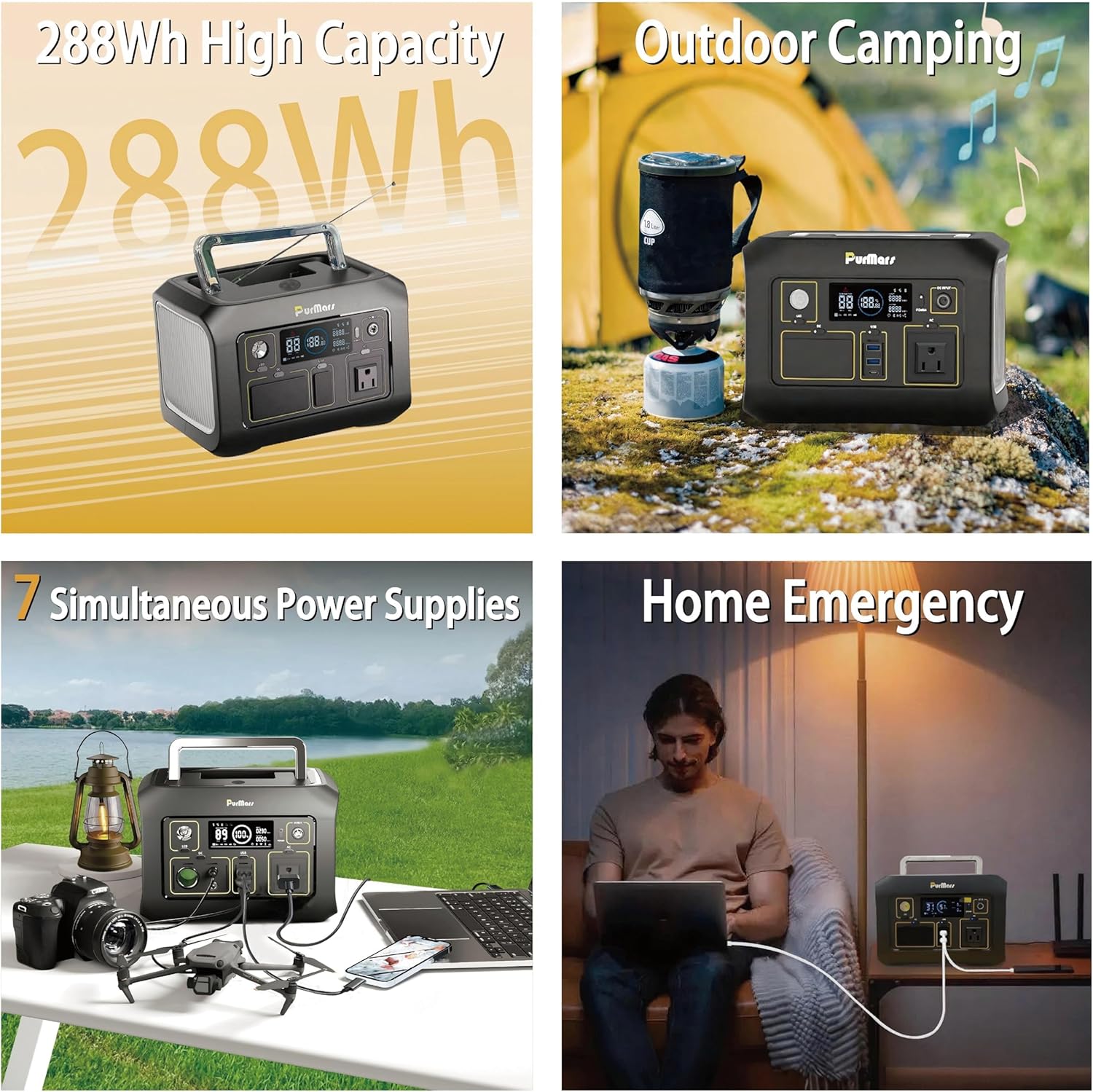 Built-In Bluetooth Speaker: PurMars 300w Portable Power Station Unlike other mini generators for camping, this portable power station comes with a Bluetooth speaker. It quickly connects to devices within a 50ft range, supports 12 hours of continuous playback when the power station is fully charged, and works independently even when the power station is charging other devices. Whether camping, traveling, or during power outages, it combines power supply with entertainment—making it more than a solar power generators for home use, but a versatile outdoor companion.
