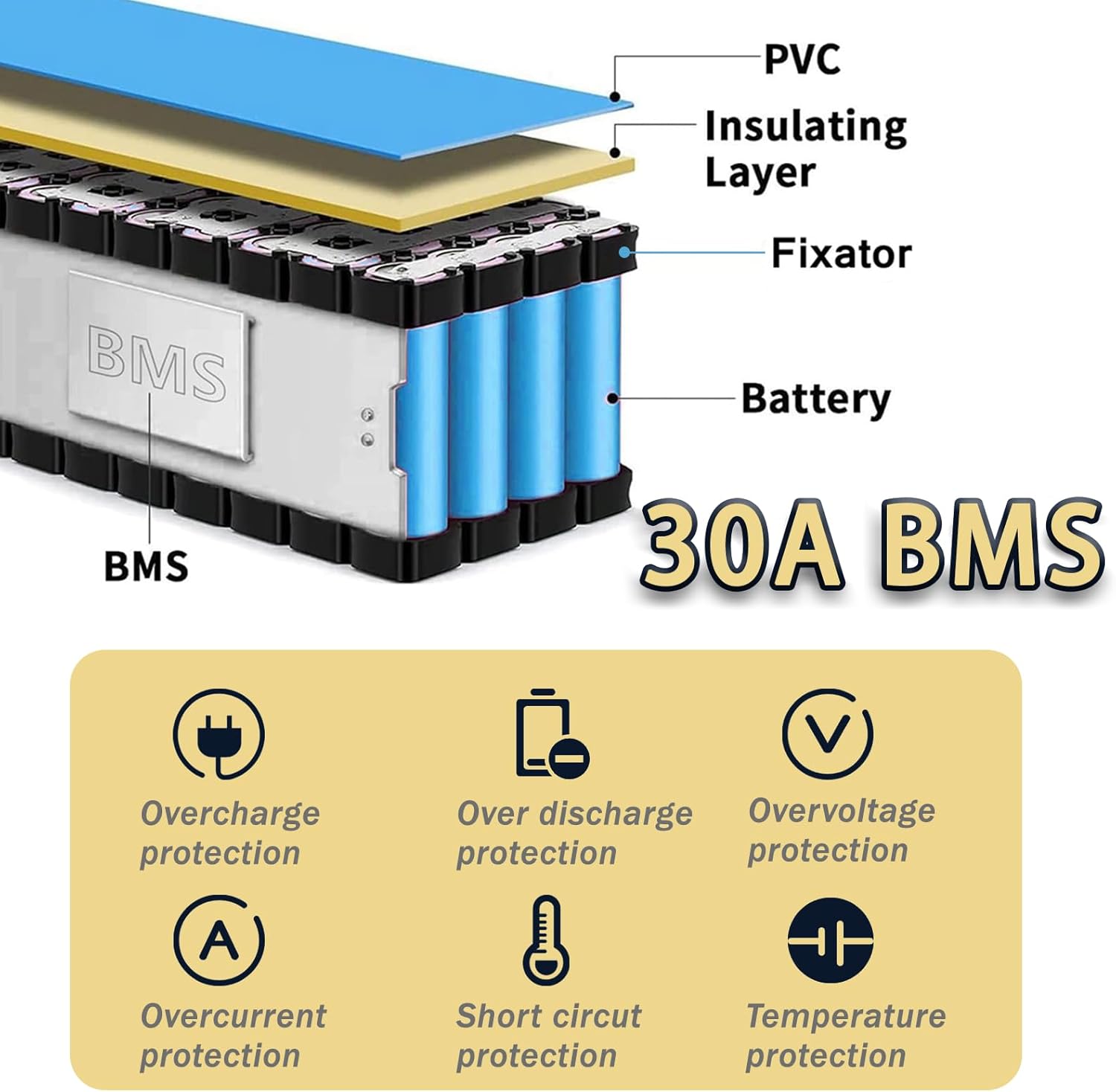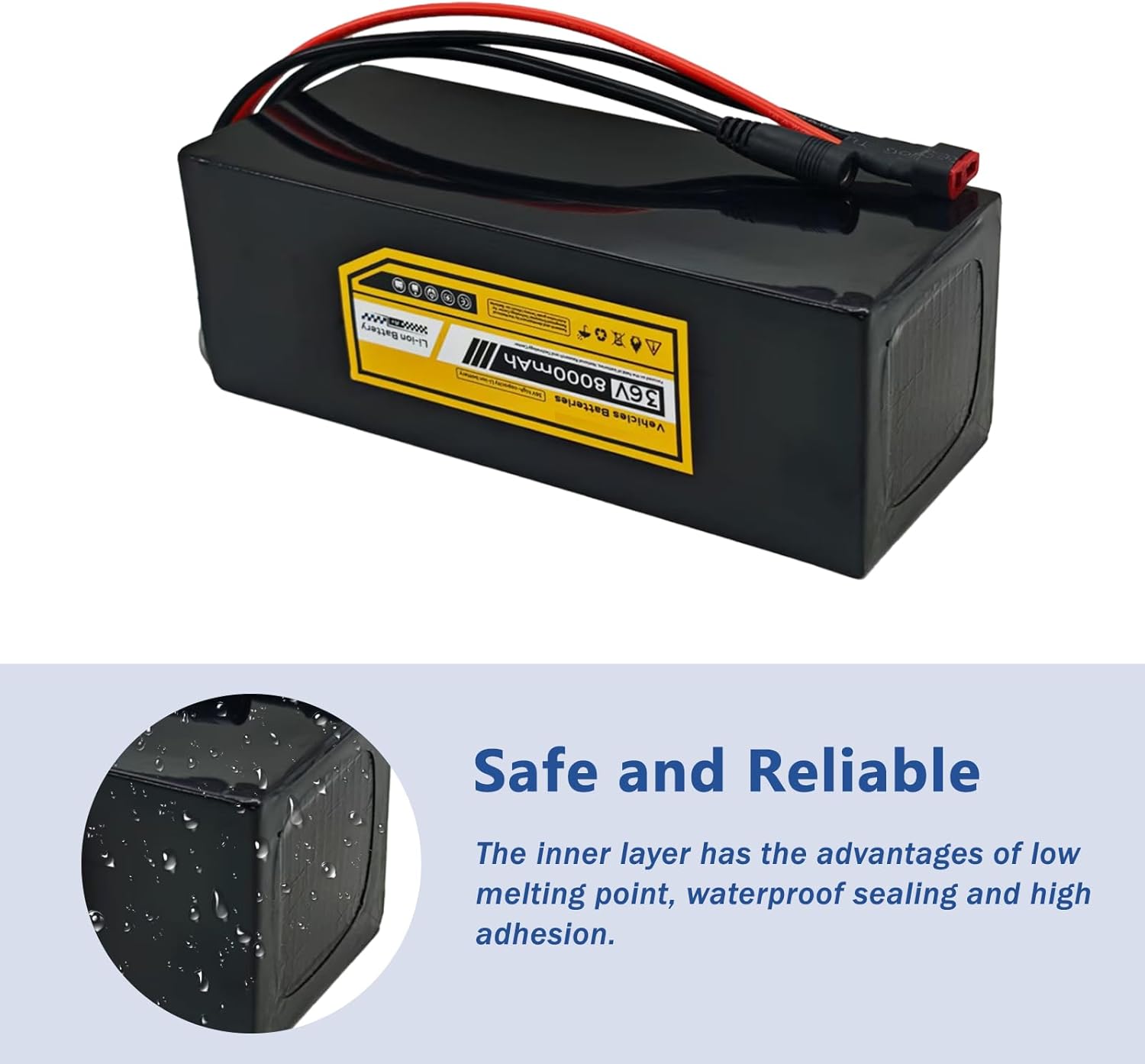 【30A BMS of 36V Battery】The 36v lithium battery is built-in 30A BMS ensures overcharge, over-discharge, overheating, and short circuit protection. High-quality Li-ion cells and precision BMS make every ride secure and reliable