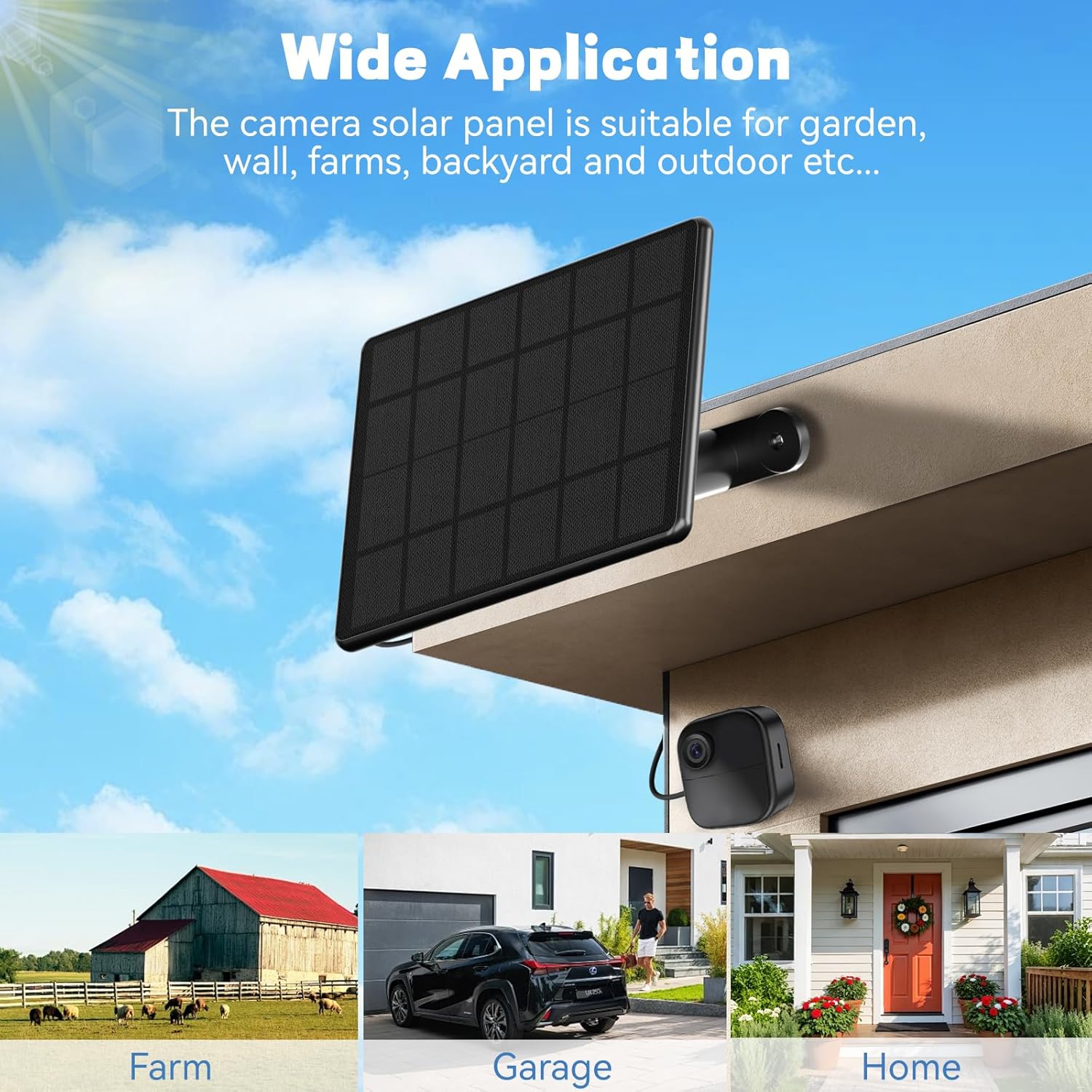 【Easy Installation】You can mount the Blink Outdoor Camera solar panels anywhere outdoors. The solar panel bracket supports 360° horizontal and 180° vertical adjustment, and the telescopic bracket supports 15*22CM(5.9-8.7inch) telescopic adjustment. Allowing you to easily position the solar panel andchoose the best angle to get the sunlight. Cable length: 9.8ft/3m.