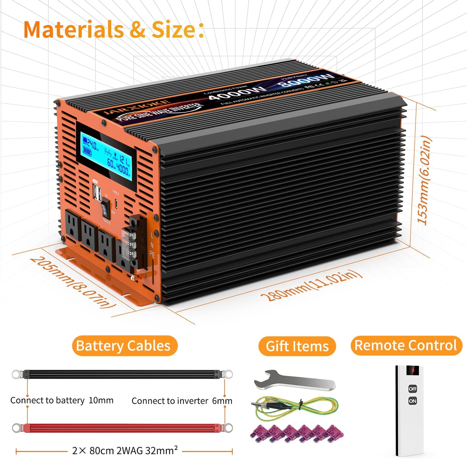 ☀ [After-sales Guarantee] You will get: JARXIOKE 4000W 24V Pure Sine Wave Power Inverter, Battery Cable, Remote Control and User Manual. We offer a 24-month warranty on every order. If you have any questions, please contact us by email!