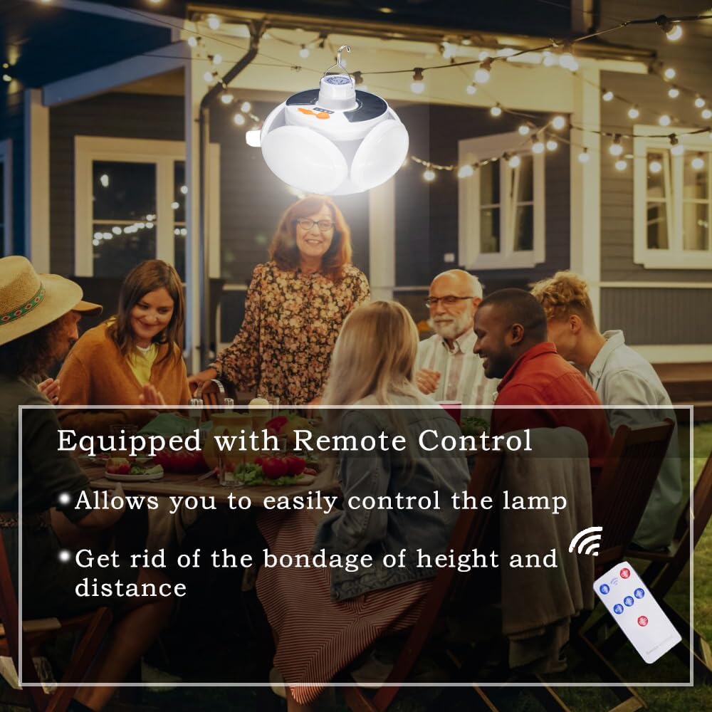[4000mah] Folding Solar Camping Lights Rechargeable Lantern Waterproof Hanging Tent Collapsible Lamp Remote Control Blub LED USB Foldable Portable for Home Indoor Outdoor Emergency Power Outage 1 Pack