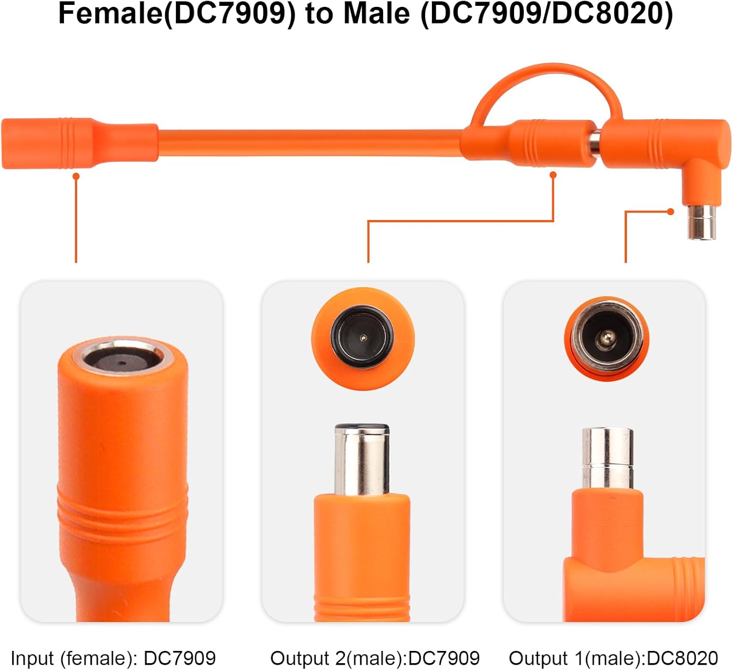 【Broad Compatibility】Specifically designed as a solar panel extension cable, this DC7909 (Female) to DC7909/DC8020 (Male) adapter ensures compatibility with Anker,EF ECOFLOW,BLUETTI, GZ Yeti, and the majority of Jackery portable power stations.Effortlessly connect compatible solar panels rated up to 200W featuring DC7909 or DC8020 output ports.