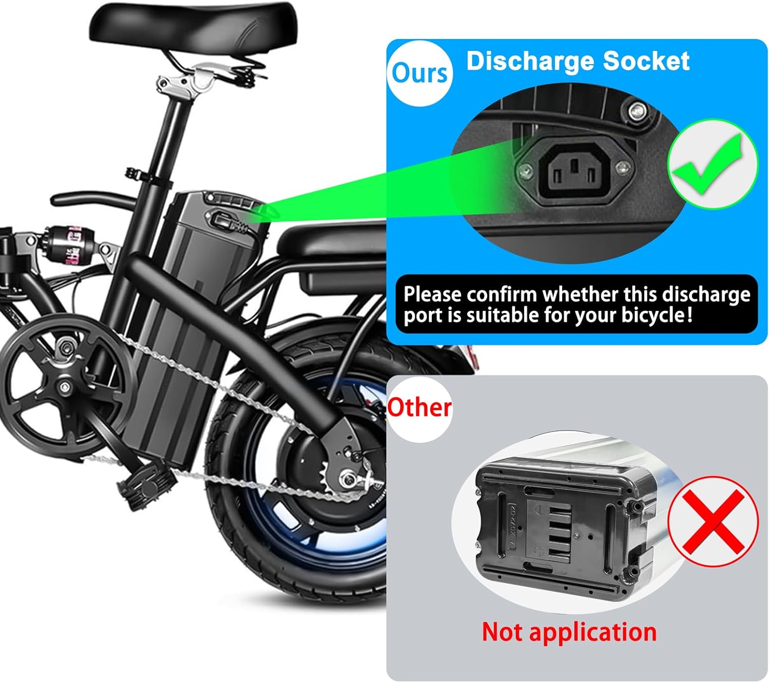 【48 Volt E-Bike Battery Compatibility】48V 13Ah battery is compatible with 48V 0-1000W motors. (Note: Before placing an order, please ensure the battery specifications (voltage, capacity, power, size) are compatible with your devices to minimize unnecessary returns or exchanges.)