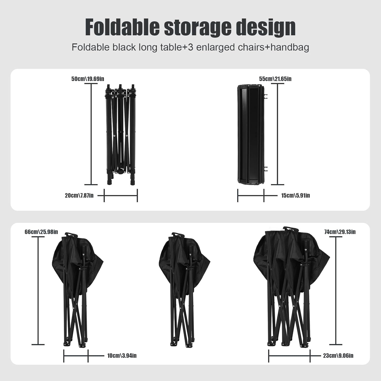 [Foldable & Easy Transport]: Collapsible table chair set with storage bags & shoulder strap weighs 22lbs. Folds into compact size, fitting car trunks, backpacks or motorcycles. Quick setup/takedown for camping, short trips, tailgates or BBQs—hassle-free outdoor transportation.