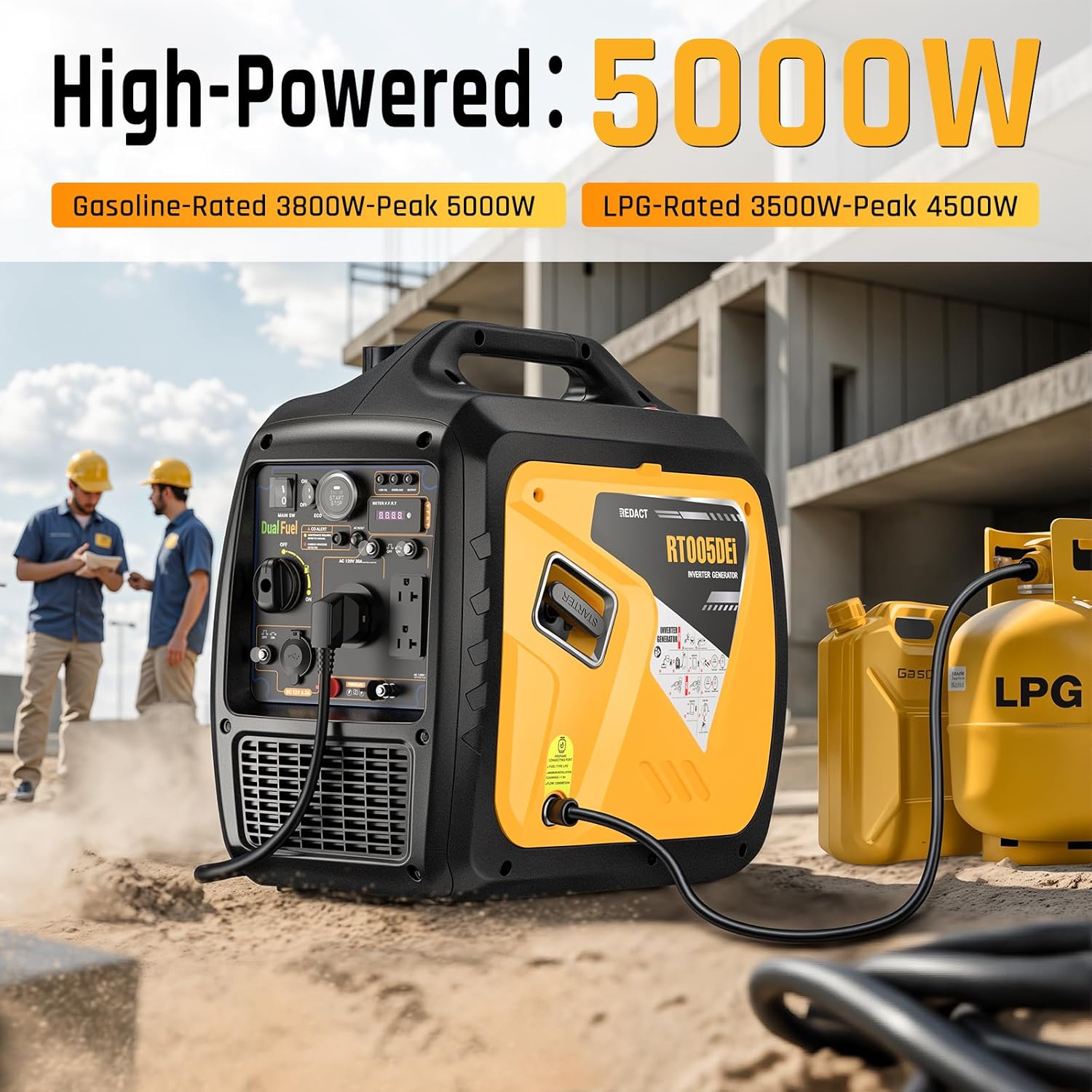 Reliable Power, Flexible Start–Get 5000W peak/3800W rated on gas or 4500W/3500W on propane with this dual fuel inverter generator. Recoil/electric/remote start options fire it up anywhere. Runs 7.5 hours on 1.8 gallons gas tank at 25% load – perfect as a generator for camping or backup gas generator for home outages.