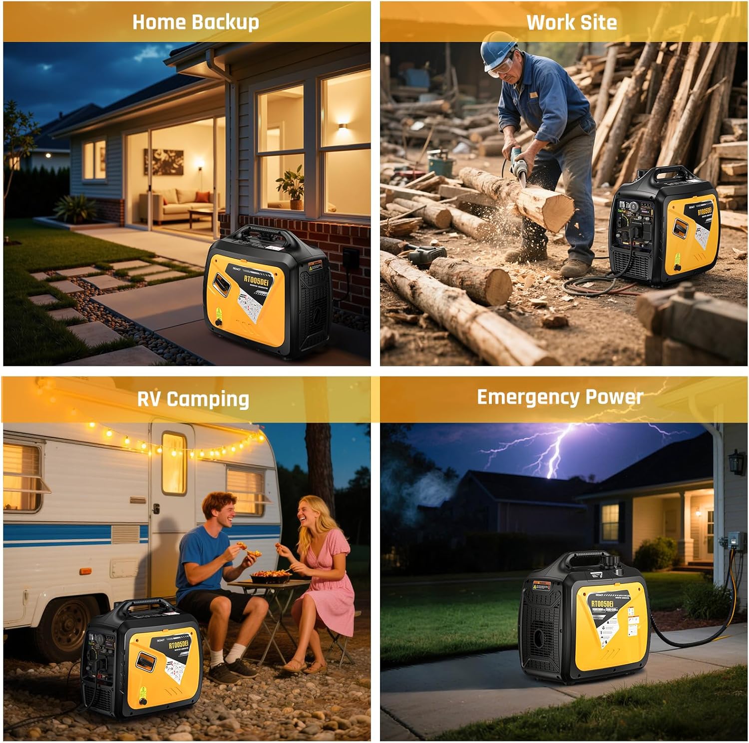 Double Your Power–Hook two portable generators via parallel ports for 7200W peak/6800W output. Powered by a 174cc engine, it’s built heavy-duty for RVs or as generators for home use during blackouts. Expandable when you need serious backup.