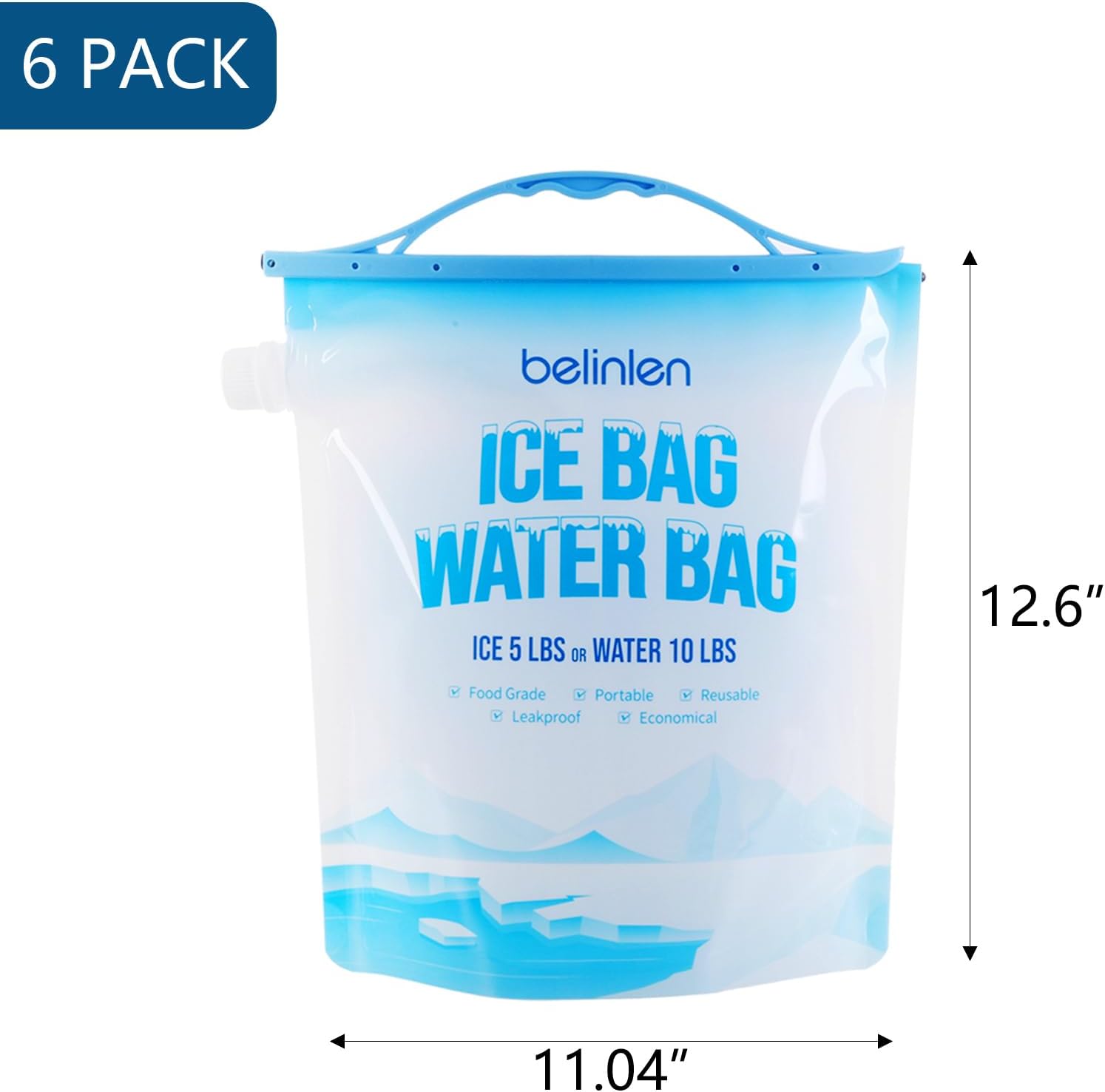 Package contains: 6 packs of 11 x 14 inch ice bag for cooler. The reusable ice bags with the large capacity easily hold 5lb of ice. Put the ice-filled ice bag into your large cooler to keep it cold for longer cooling.