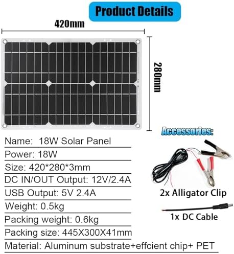 Efficient and Portable: This Solar Power Set features an 18W 12V Solar Panel, a 30A Charge Controller, and a Power Inverter, designed to meet your Outdoor Power needs. Ideal for Camping, RVs, and Emergency Backup, it provides reliable energy solutions while being lightweight and easy to transport. Enjoy the convenience of solar power wherever you go!