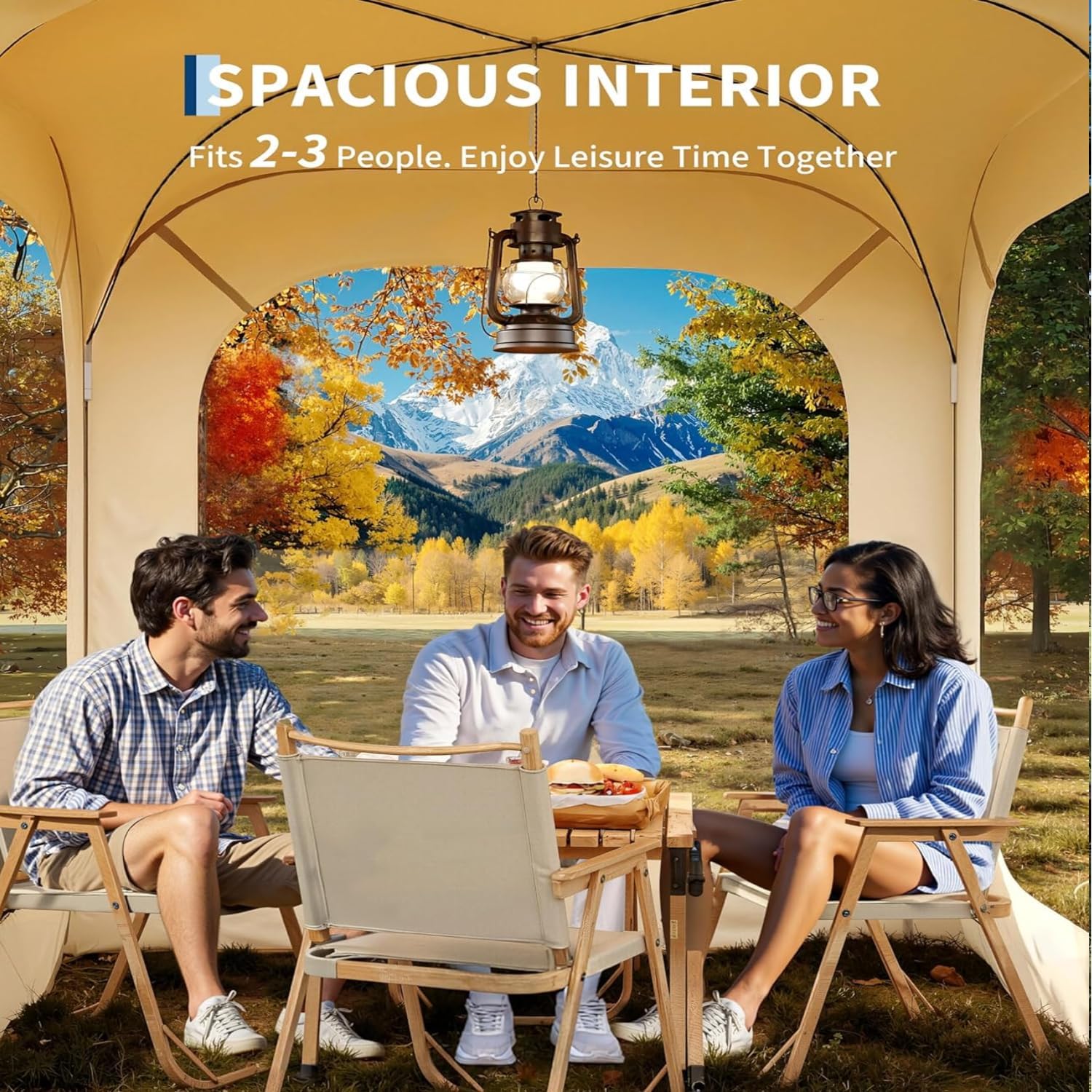 [UV PROTECTION & VENTILATION] The arched-top polyester canopy provides UPF 40+ sun protection to help reduce UV exposure during long days outdoors. Open the zippered doors and windows to let fresh air flow on warm days, or close them to trap warmth on chilly mornings, making it a versatile pop up gazebo for all kinds of weather.