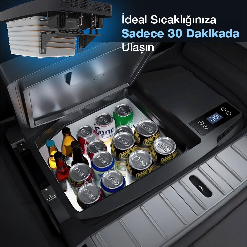 【Smart APP Control 】Digital smart control panel with electronic temperature control. Can also be remotely managed via free Bluetooth app. Tesla model y refrigerator for RV, boat, camping, fishing, tailgating, backyard BBQ.