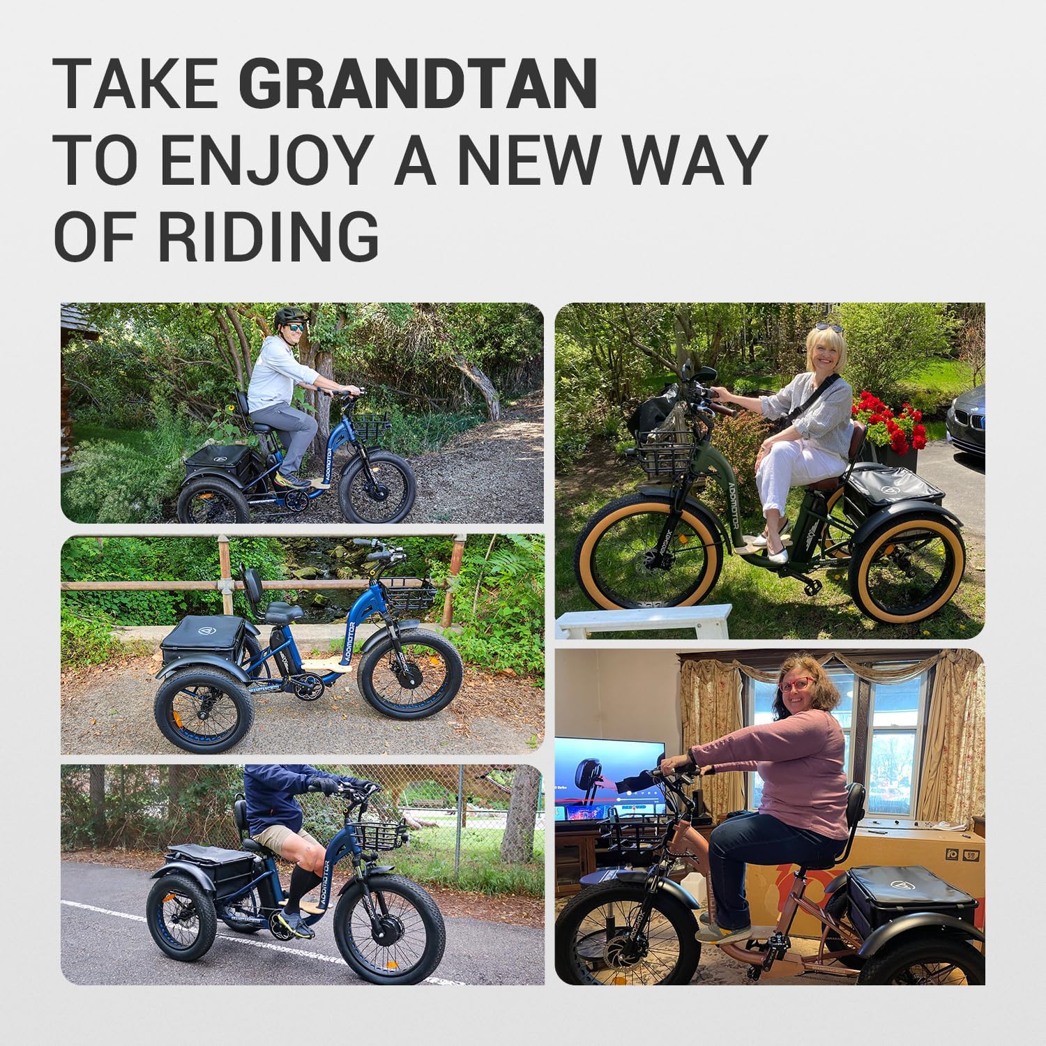 [Certified for Ultimate Safety]: Fully UL2849 certified with a UL2271-certified lithium battery, this Grandtan M-340 electric trike meets top-tier safety standards, giving you confidence and peace of mind with every ride