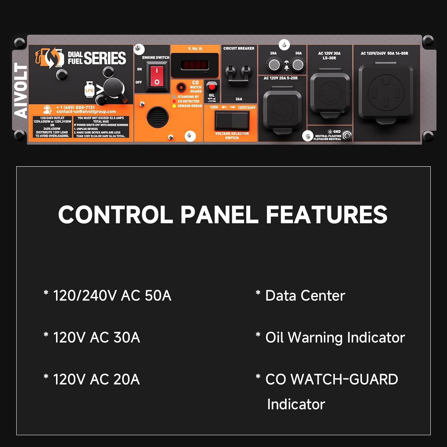 【Smart Control Panel】Stay fully informed and in control with the integrated digital data center that displays voltage, frequency, and total run time, plus a convenient voltage selector switch to easily toggle between 120V and 240V output, giving you precise monitoring and flexible power management for all your essential home electronics and equipment.