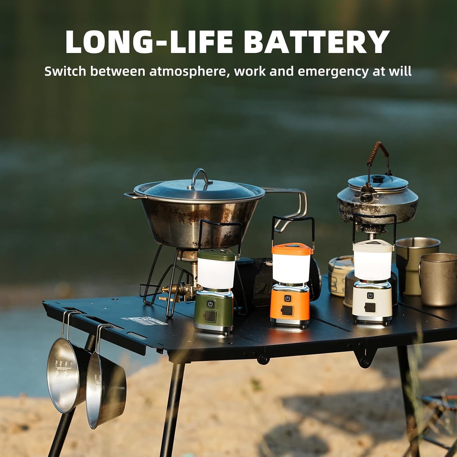 Slip Proof Handle & Quick disassembly design:This rechargeable LED lantern features a slip-proof handle for easy hanging and a hand-free light source. This LED camping lantern can also help light up your patio or backyard during winters!The bottom has a 1/4 threaded design, which allows for the installation of a tripod and quick installation and removal of the tripod