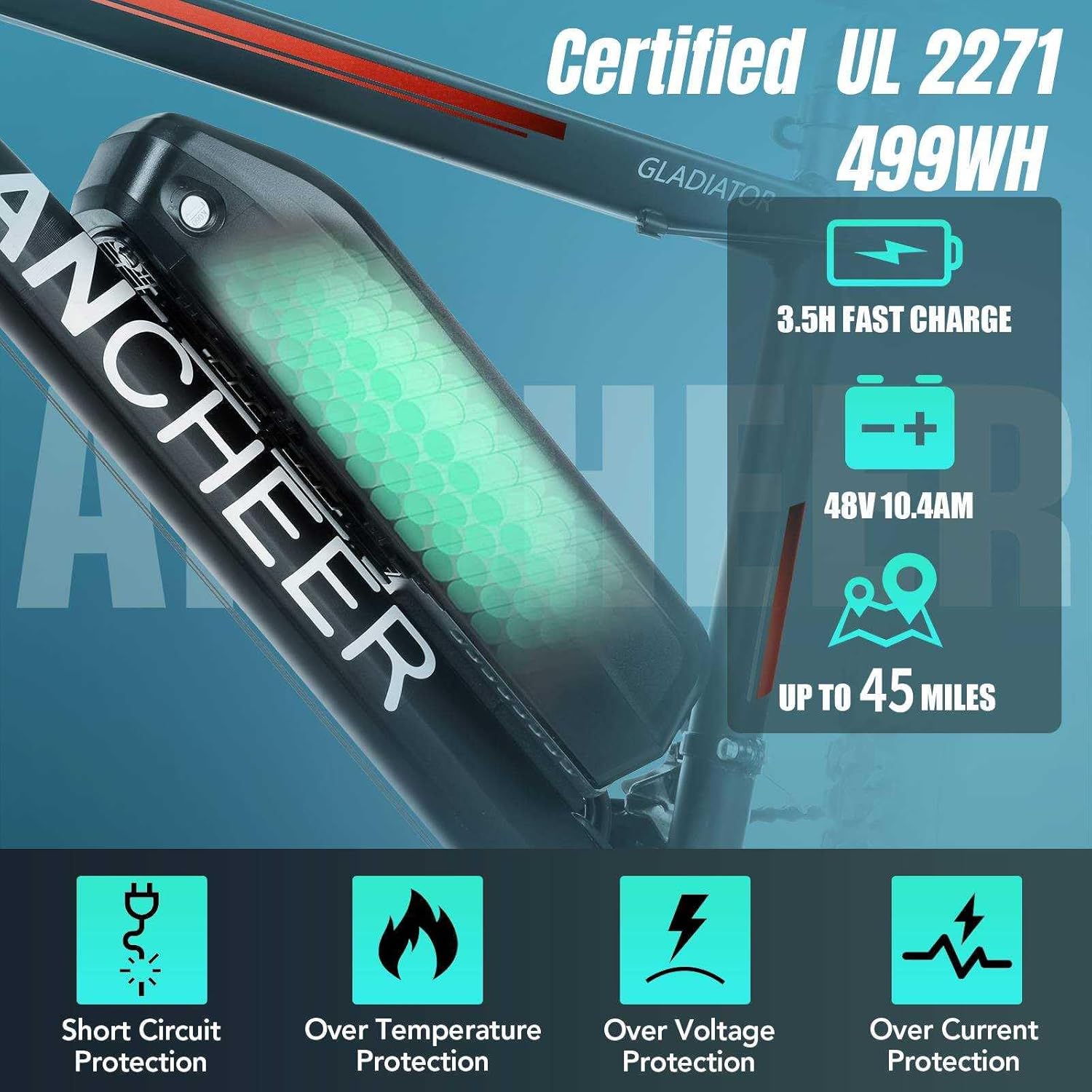 ANCHEER Electric Bike for Adults with 750W Peak Motor, 48V 499Wh Ebike, Up to 55 Miles, 3H Fast Charge, 26” Gladiator Electric Mountain Bike, LCD Display, 21Speed, 20MPH Adults Electric Bicycle