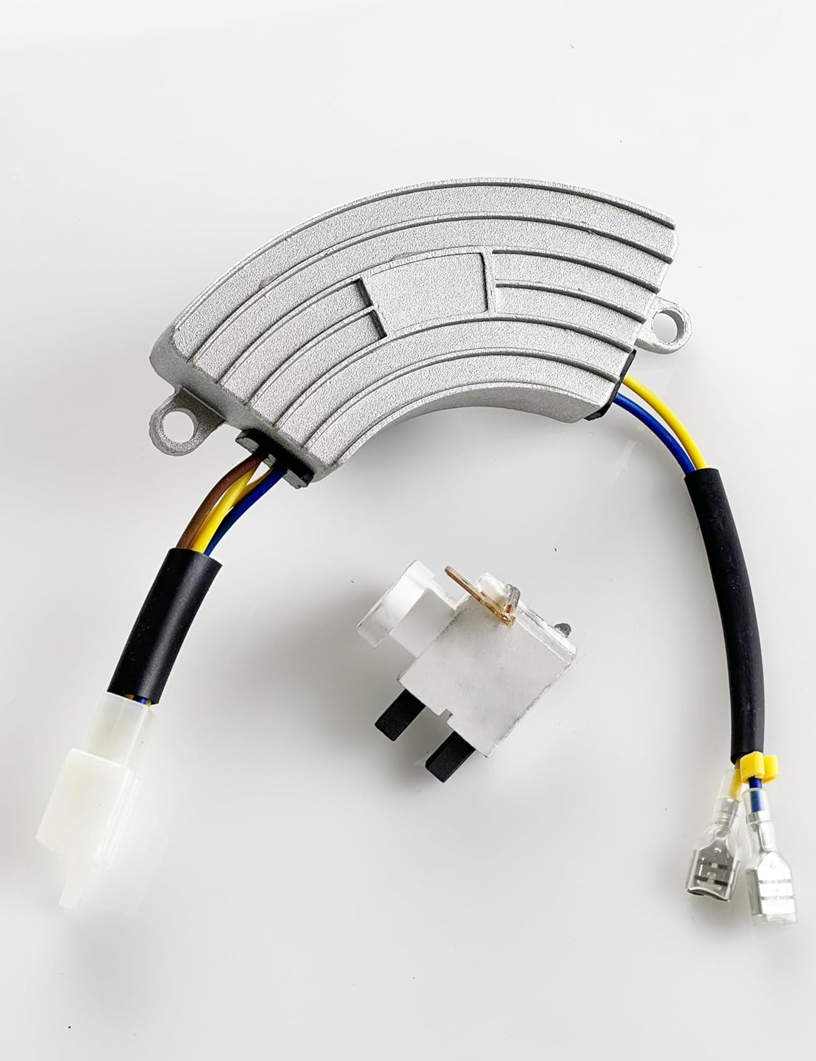 Product Description: Aluminum Half Moon automatic voltage regulator (AVR) with carbon brush, designed for 3000W–4500W portable generators.Honda Clone Compatibility: Compatible with Honda clone engines in models like 3250, 3500, 4000, and 4500-watt generators.Generator Brand Compatibility: Works with popular brands including Generac (e.g., GP3250/3300/3600), Firman (P03501, P03601), Champion (3000–4650W models), and All Power, Predator, AI Power.Additional Compatibility: Also fits generators from Westinghouse (WGEN3600 series), Togo Power, Pulsar, Tomahawk, Raven, Simpson, GMC Yukon, Lifan, Black Max, Ryobi, and Sportsman.Other Applications: Suitable for various generator series from Coleman, Powermate, Duromax, and BE Power Equipment (3500–4200W).