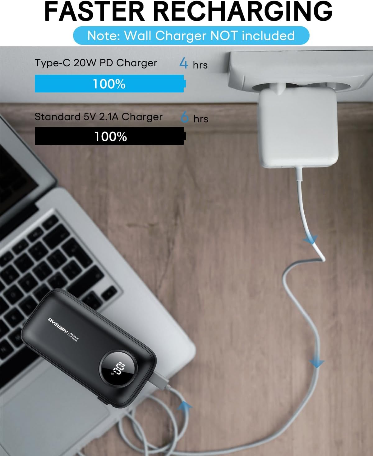 Battery Type: Lithium-ion Capacity: 10,000mAh (37Wh/3.7V) Item Weight: 7 Ounces Product Size: 4.45in x 2.3in x 1.14in Holds Charge: 6 months + Charging power: USB-C PD 20W, USB-A 22.5W