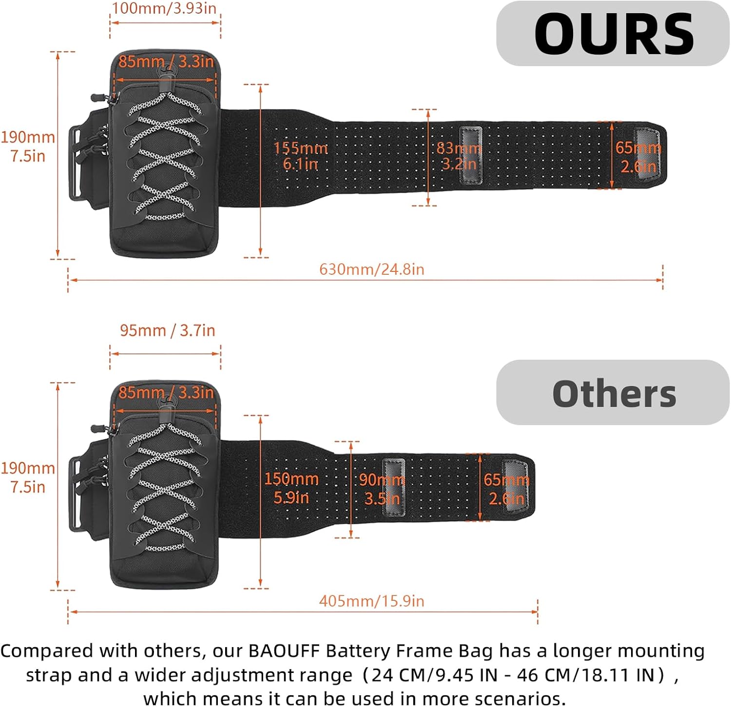FUNCTION: Dirt bike battery frame bag is installed on the battery cover with mounting strap (adjustable range: 24 CM/9.45 IN – 46 CM/18.11 IN ), which is used to store items you carry with you, such as mobile phones, keys, or some small tools, so that you no longer have to worry about not being able to store items.