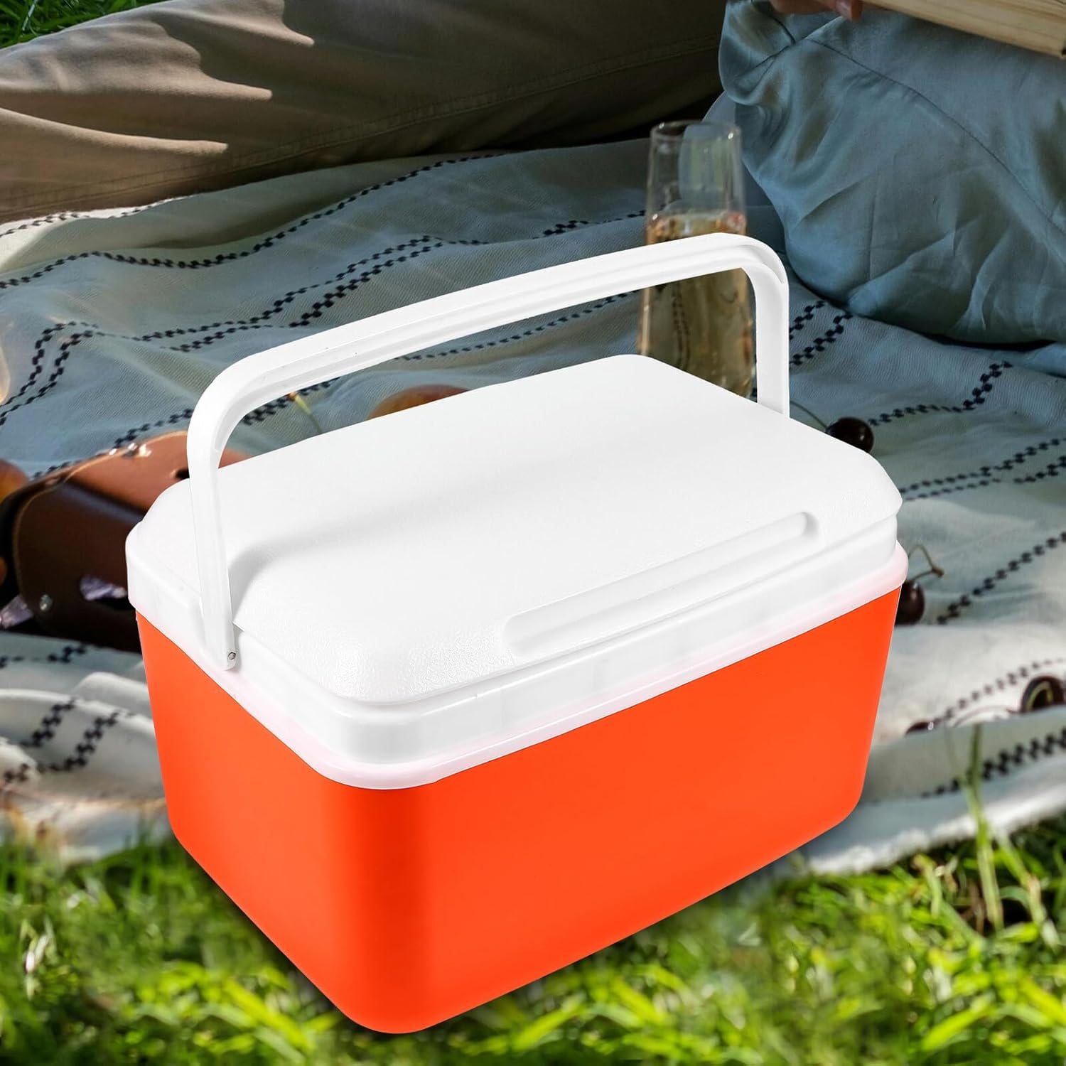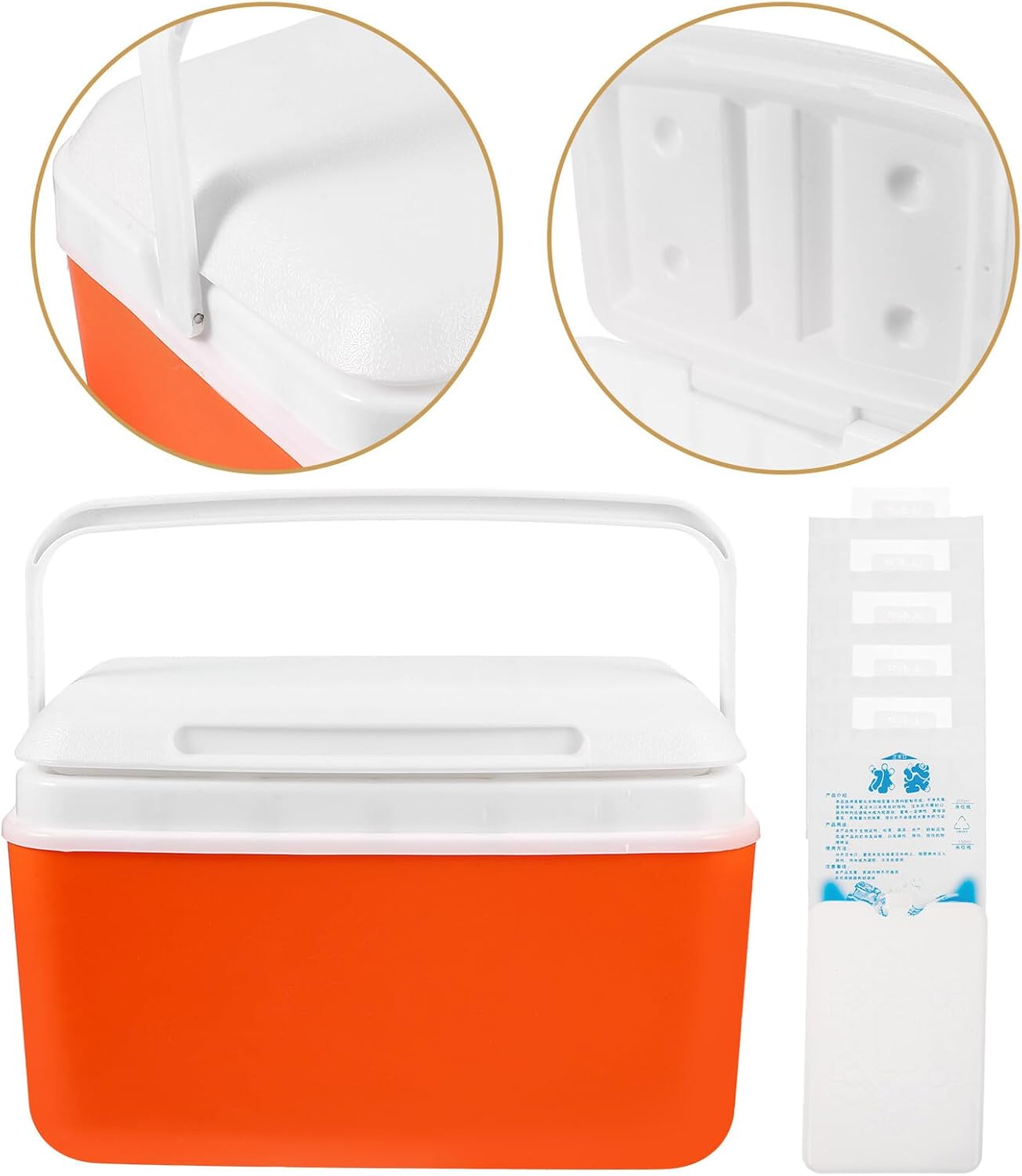 BESTonZON Portable 9l Insulated Cooler Box with Handle, Vehicle Fridge Cooler for Outdoor Camping and Picnic, Includes 5 Ice Packs and 1 Ice Plate, Orange Thermal Food Storage Bucket