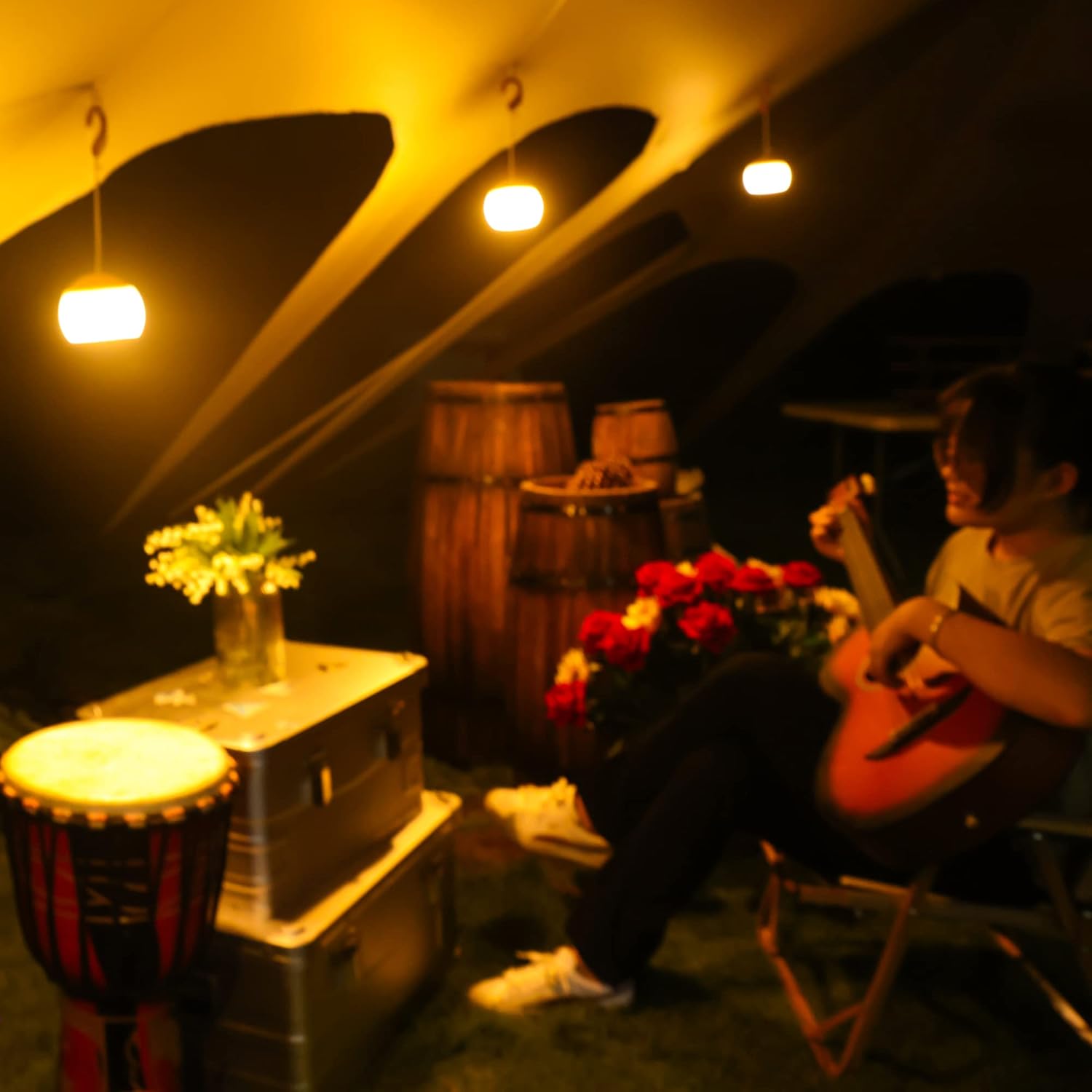 【Multifunctional Tent Light & Glare-resistant】Combining upgraded LED chips with soft silicone globe, novel design makes this rechargeable camping lamp incredible bright but not glaring. This versatile LED camping lantern can be hung from a tent, carried by hand, or placed on a flat surface, ground, or table. Not only serve as camping lighting, but also essential for home decoration, tent decoration, birthday and holiday decorations.