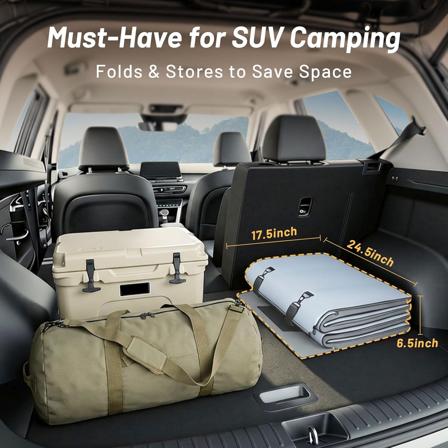 【Foldable Design for Easy Use】This non-inflatable car mattress sets up in 10 seconds with no air pump. Foldable and detachable, it can be used fully or partially and folds compactly (25 × 18 × 6.5 inches) for easy storage in the trunk or at home.