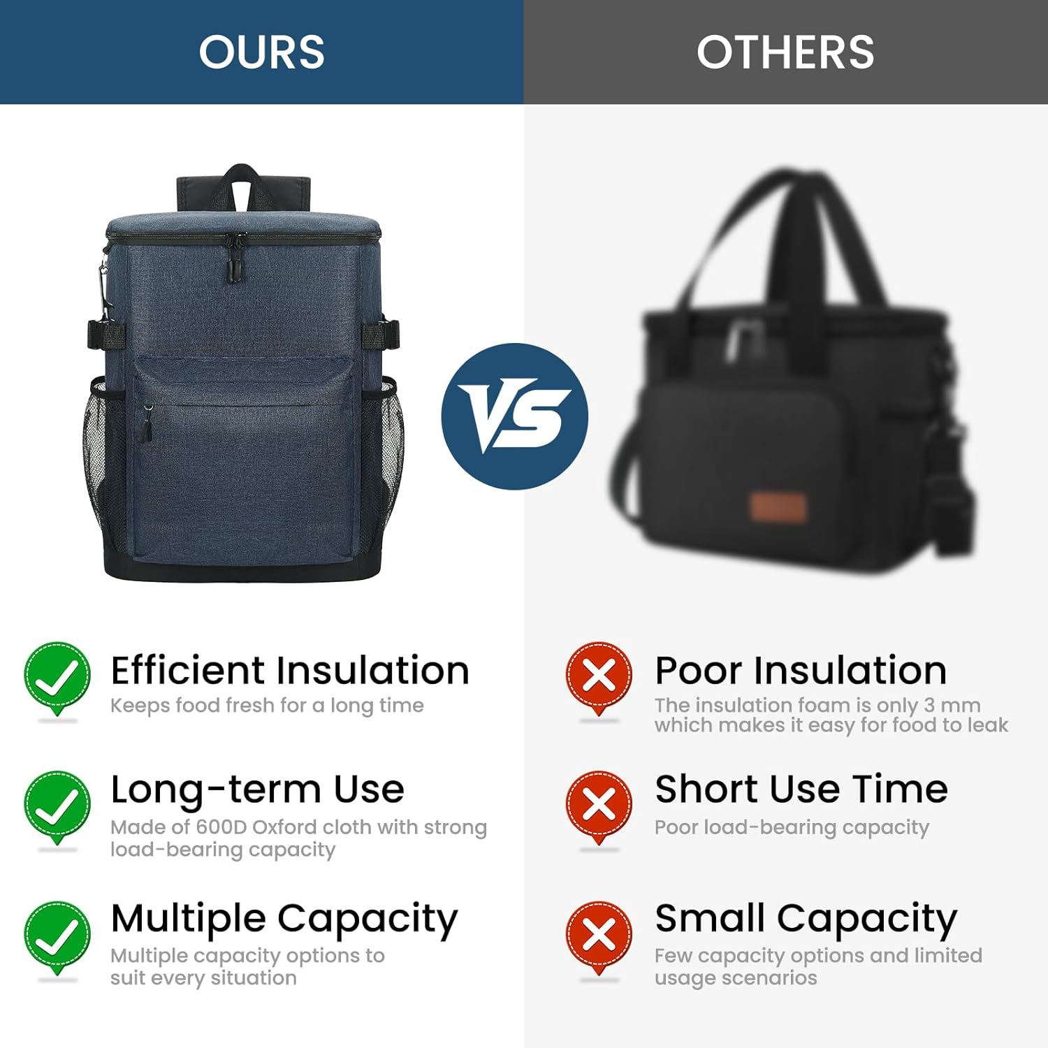 EXCELLENT KEEP COOL/WARM: Nymbralisque’s insulated cooler backpack are made with premium quality hot seamless pressing PEVA Lining and thickened foam to ensure their keep cool/warm function. This cooler bag are the answer to all your needs for keeping your food warm or cold, whether you’re going on a picnic, taking your lunch to work, meeting friends or camping, our soft cooler bag is the answer to your worries, keeping your food fresh and your drinks cold.