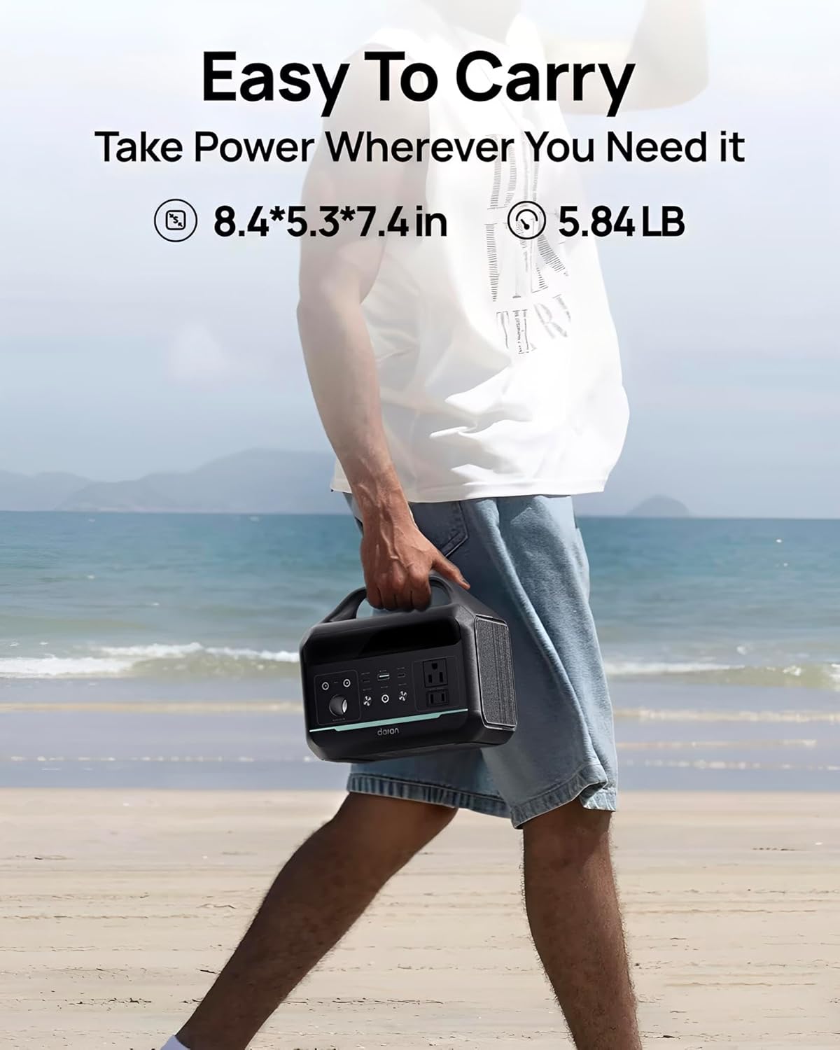 【Compact and portable power station】 This 300W (600W surge) portable power station with 192Wh (60,000) mAh LiFePO4 battery, weighing only 5.84 lbs, this compact power bank measures 8.4 × 5.3 × 7.4 in, making it easy to carry and store in backpacks, tents, and cars. Delivers reliable backup power for camping, RV trips, travel, tailgating, power outages, and emergency home use. 300W pure sine wave supports most tablets, laptops, phones, lights, fans, projectors, cameras, mini-fridges.