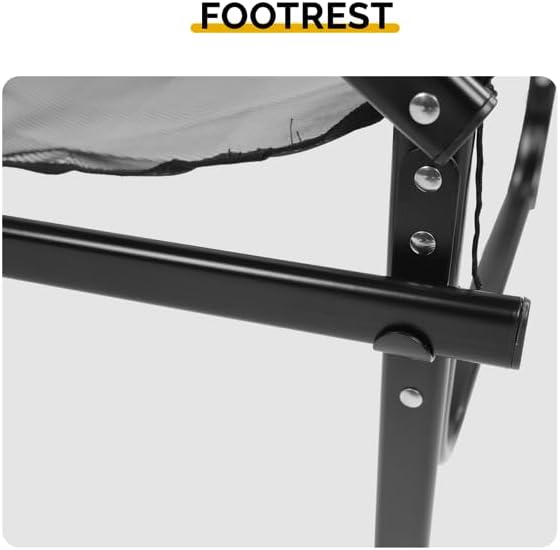 - Achieve versatile seating with this 31-inch Tall Directors Chair featuring a sturdy iron frame and 600D Oxford cloth construction. Supporting 265 lbs, this chair offers a 20.1-inch wide seat with 16.1-inch depth and includes practical accessories like a detachable footrest, side table, and storage pockets. Weighing only 15.7 lbs, it’s perfect for outdoor events, camping, and professional use.