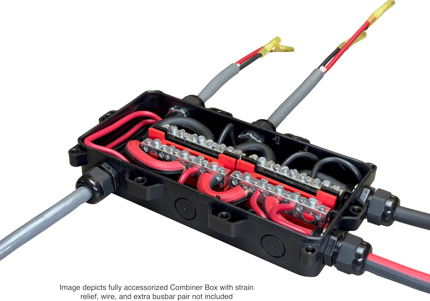 Busbars with Multiple Terminal Holes: Inside the box, cables can be attached to our busbars using multiple screw-down terminal holes. A red bar designates positives, while a black bar designates negatives, reducing confusion during installation and ensuring efficient power management.