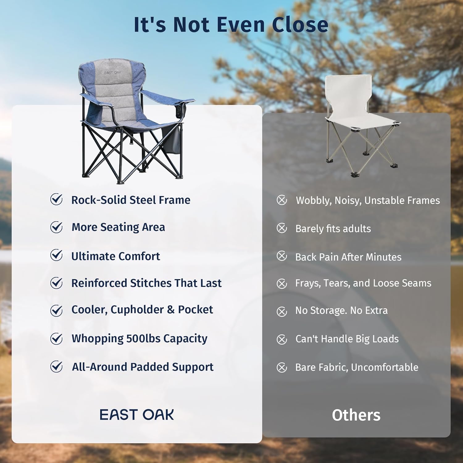 East Oak Oversized Camping Chair | Heavy Duty Camping Chairs | 500LBS Support, 600D Oxford, Cup Holder & Side Pocket | Ideal for Camping, Beach, Sports Events| Blue&Grey