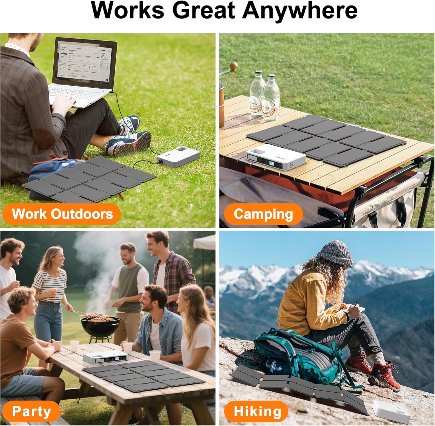 【Multi-Device Compatibility with Fast Outputs】Equipped with USB-A, USB-C PD, DC5521, and 90W AC inverter ports, this solar power bank for camping supports laptops, drones, cameras, and lights simultaneously. A reliable solar battery charger and portable charger solar for multiple devices